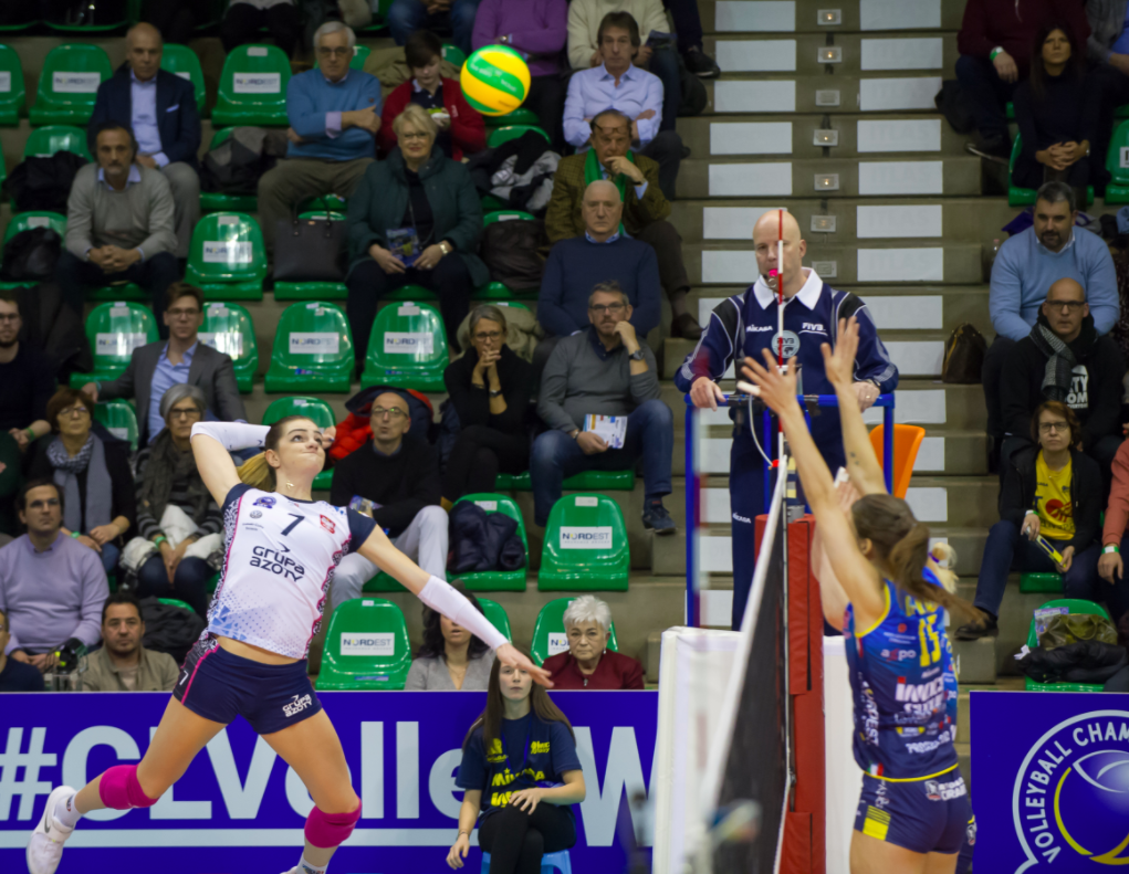 Conegliano kende een andere samenstelling dan normaal. Kelsey Robinson startte, net als Nicole Fawcett, in de basis. De beide Amerikaanse topspeelsters waren nog iets onwennig, net als de rest van het team. In de eerste twee sets wist Robinson haar team nog wel bij de hand te nemen, maar Fawcett wisselde mooie punten af met onnodige fouten. Een voorsprong was er na 25-23 winst, maar set twee en drie gingen met 25-20 naar de Poolse zijde. De overtuiging en zekerheid ontbrak op beslissende momenten, waar Chemik Polce onder leiding van onder andere de Poolse Malwina Smarzek juist doordrukte.