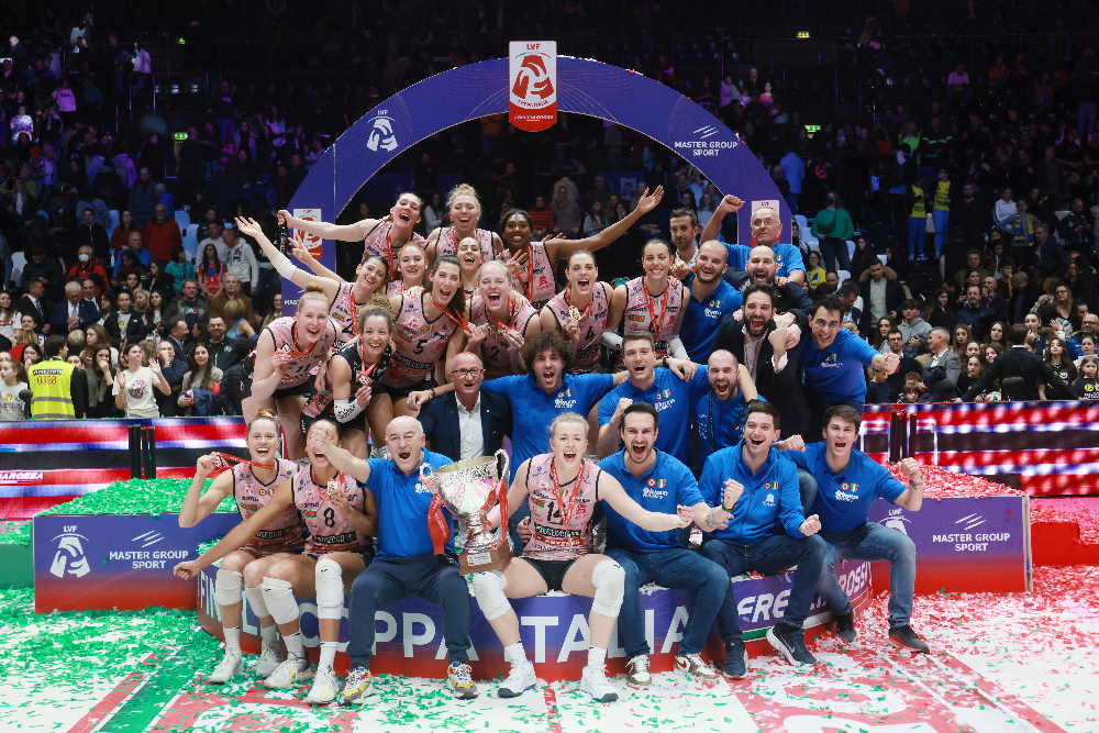 Robin de Kruijf en haar Italiaanse club Prosecco Doc Imoco Conegliano wonnen dit weekend alweer de derde prijs van het seizoen. Het won de finale van de Coppa Italia, het Italiaanse bekertoernooi, in drie sets overtuigend van Vero Volley Milano (25-17, 25-23, 25-19).