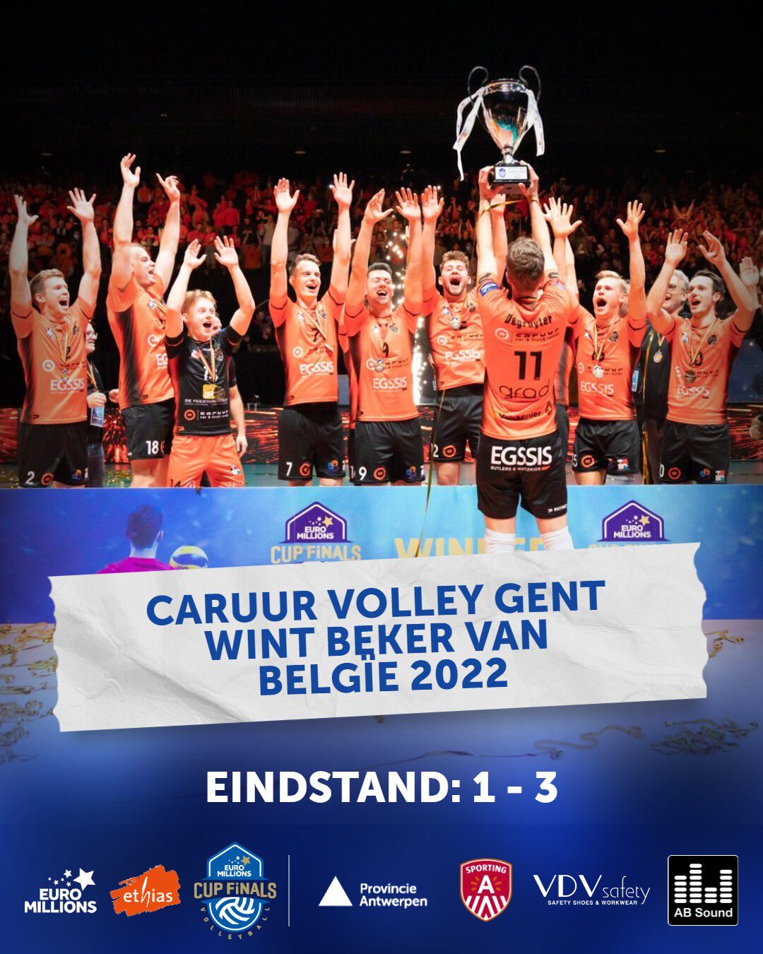 Aalst was de beste ploeg in de eerste set. Vooral Robin Overbeeke liet zien gretig te zijn om voor de tweede keer de Belgische beker te winnen. Na een gelijk opgaand begin trok hij met zijn vijf punten in de eerste set Aalst naar setwinst (25-21). Ook in set twee was Aalst lange tijd de betere ploeg. De ervaren Van de Voorde speelde dominant op het midden en de ploeg liep een paar punten uit. Maar Aalst deinsde niet terug en forceerde via de servicelijn. Via drie aces en een hele sterke Jente de Vries (7 punten) knokte Gent zich terug en kwam het op 23-24 op setpunt. Chris Ogink blokte vervolgens de aanval van Aalst en bracht de stand op 1-1 (23-25). De gemiste kans van Aalst leek hen in eerste instantie niet van de wijs brengen, want ook in de derde set had de ploeg van Overbeeke de overhand. Maar wederom was een voorsprong van vier punten niet genoeg. Op 19-19 kwam Gent langszij en mentaal was de ploeg van De Vries en Ogink vanaf dat moment sterker. Via 23-25 pakte Gent ook de derde set. Daarna was het gedaan met Aalst. De op papier meer ervaren ploeg liet het passend en aanvallend afweten en zo werd al snel duidelijk wie de bekerwinnaar ging worden. Een vroege voorsprong van Gent in de vierde set werd alsmaar groter en op 14-24 sloeg De Vries de verlossende bal binnen. "Het besef dat we de Cup konden pakken groeide tijdens de wedstrijd. De laatste set verliep als een droomscenario. Alles viel op zijn plaats. Het was echt genieten", aldus De Vries via HNL.be.