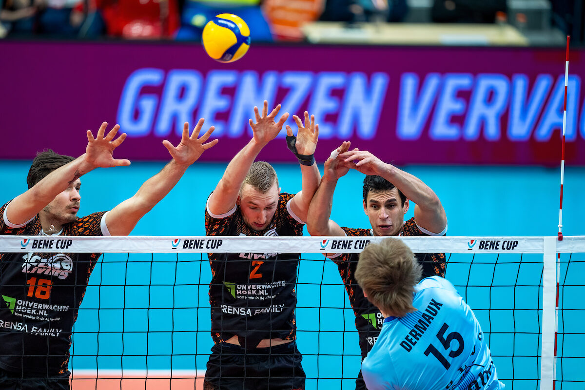 Woensdagavond speelden de twee landskampioenen al tegen elkaar in Doetinchem. Eerder dit seizoen in de BeNe Cup was het verschil nog groot, maar de twee ontmoetingen in de BeNe Conference waren een close call. Orion Stars presenteerde zich voor eigen publiek uitstekend en kreeg in de eerste twee sets kansen om te winnen, maar vergat zichzelf in de slotfase te belonen (25-27, 24-26). Ondanks twee keer nipt setverlies hield de thuisploeg het vertrouwen en wist het de derde set te winnen, mede dankzij een ace en scores van Maksim Shkredau (25-22). In de vierde set liet Knack Roeselare echter weer zijn klasse zien en met dank aan topscorers Basil Dermaux (22 punten) en Seppe Rotty (20 punten) gingen de winst en drie punten mee met de Belgisch kampioen (25-20). Jannes van der Ham blonk uit voor Orion Stars met 18 punten (7 killblocks, 73% aanval).
