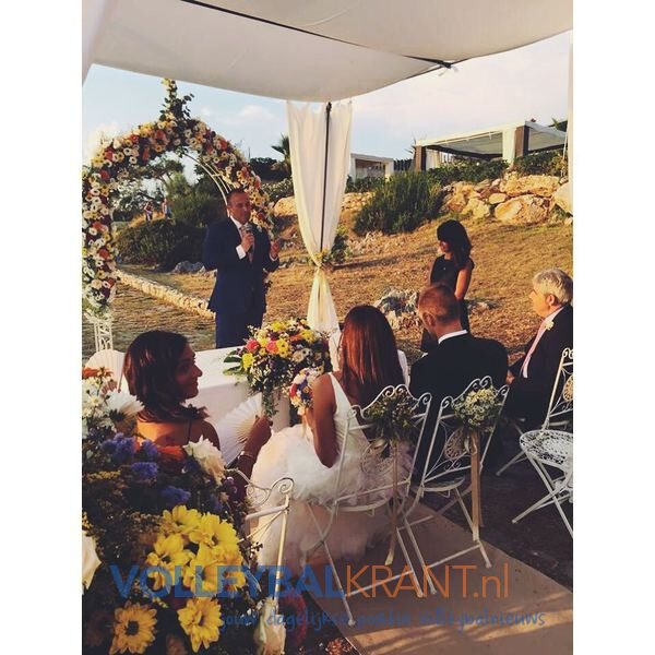 Kooy stapte gisteren in het huwelijksbootje met zijn Giovanna Allegrini. Ze trouwden in het Zuid-Italiaanse kustplaatsje Cirella di Diamante; in gezelschap van familie en vrienden, waaronder de nodige volleyballers zoals Nimir Abdelaziz en Kay van Dijk.