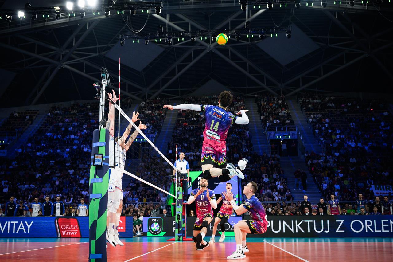 Perugia zal zondag de finale spelen tegen de winnaar van Zawierce en Jastrzebski. Vandaag om 14.45 uur staan de twee Poolse ploegen in het grote stadion in Lodz tegenover elkaar. De wedstrijden van de Final Four zijn (tegen betaling) te zien op Eurovolley.