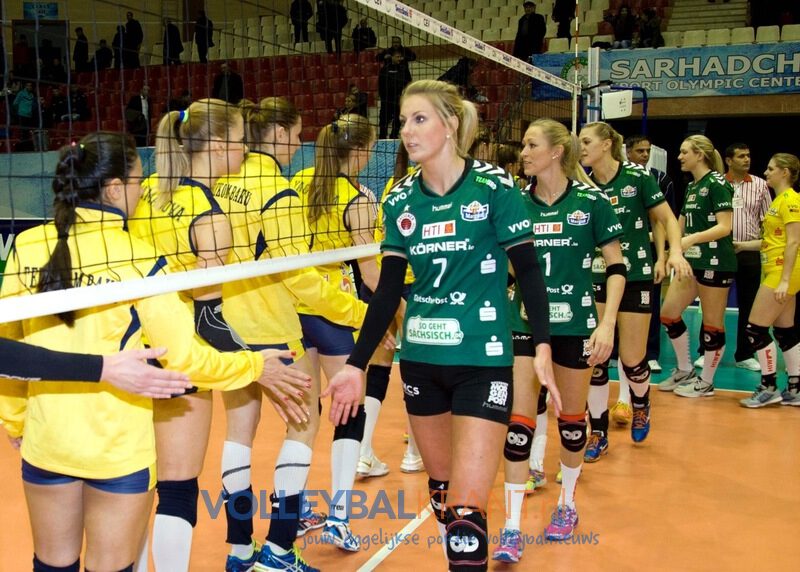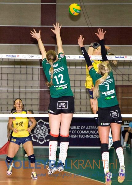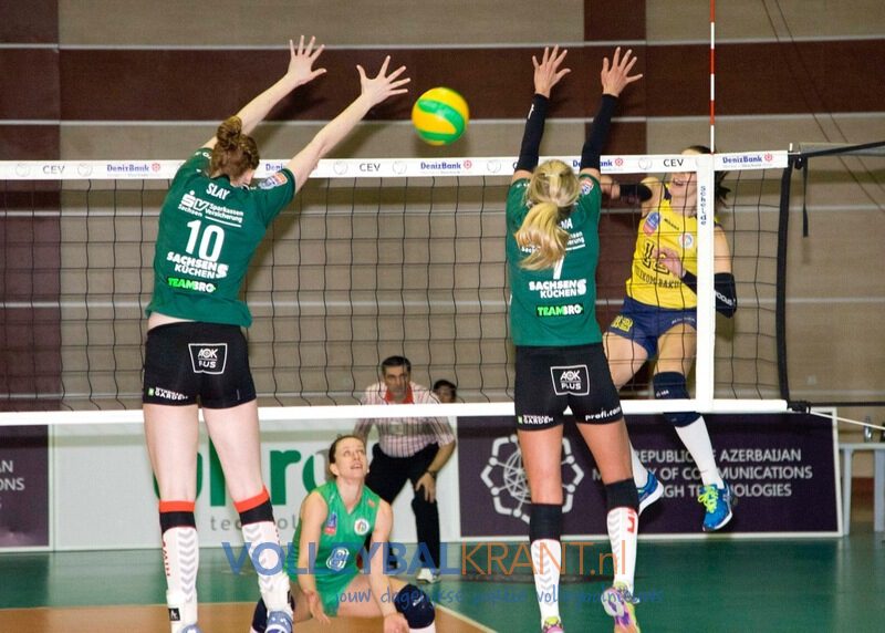 De Duitse ploeg van Laura Dijkema en Myrthe Schoot won gisteravond met 3-2 bij en tegen Telekom Baku. Dat betekende de derde zege op rij voor Dresden, dat daardoor de tweede plek stevig in handen heeft in poule E.