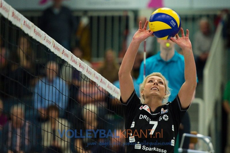 Alledrie Nederlandse speelsters begonnen in de basis. In de eerste set kon USC Münster voor 1300 toeschouwers, waaronder de nodige Nederlanders, Dresden behoorlijk onder druk zetten met de service. Omgekeerd lukte dat niet, waardoor Von Piekartz haar gevaarlijke midspeelsters naar hartelust kon bedienen. Bij de bezoekers had Dijkema het dus zwaar door de matige pass. In een poging het tij met wissels te keren greep Dresden-trainer Alex Waibl naar wissels en zo werd Dijkema op 14-9 onderdeel van een dubbele wissel. Die pakte goed uit, Dresden kwam terug in de set en op 18-17 mocht Dijkema terugkeren. Helaas voor haar kon Dresden niet doordrukken en Von Piekartz en co wel: 25-20. Waibl besloot de tweede set met de van een blessure herstelde Molly Kreklow te beginnen als spelverdeelster en hoewel Dresden aanvankelijk problemen bleef houden, ging het langzaamaan beter. Dat betekende uiteindelijk slecht nieuws voor Von Piekartz die met haar team vervolgens kansloos was. Aanvallend kon Dresden gewoon meer brengen. Von Piekartz en Dijkema kwamen beiden tot een puntje.