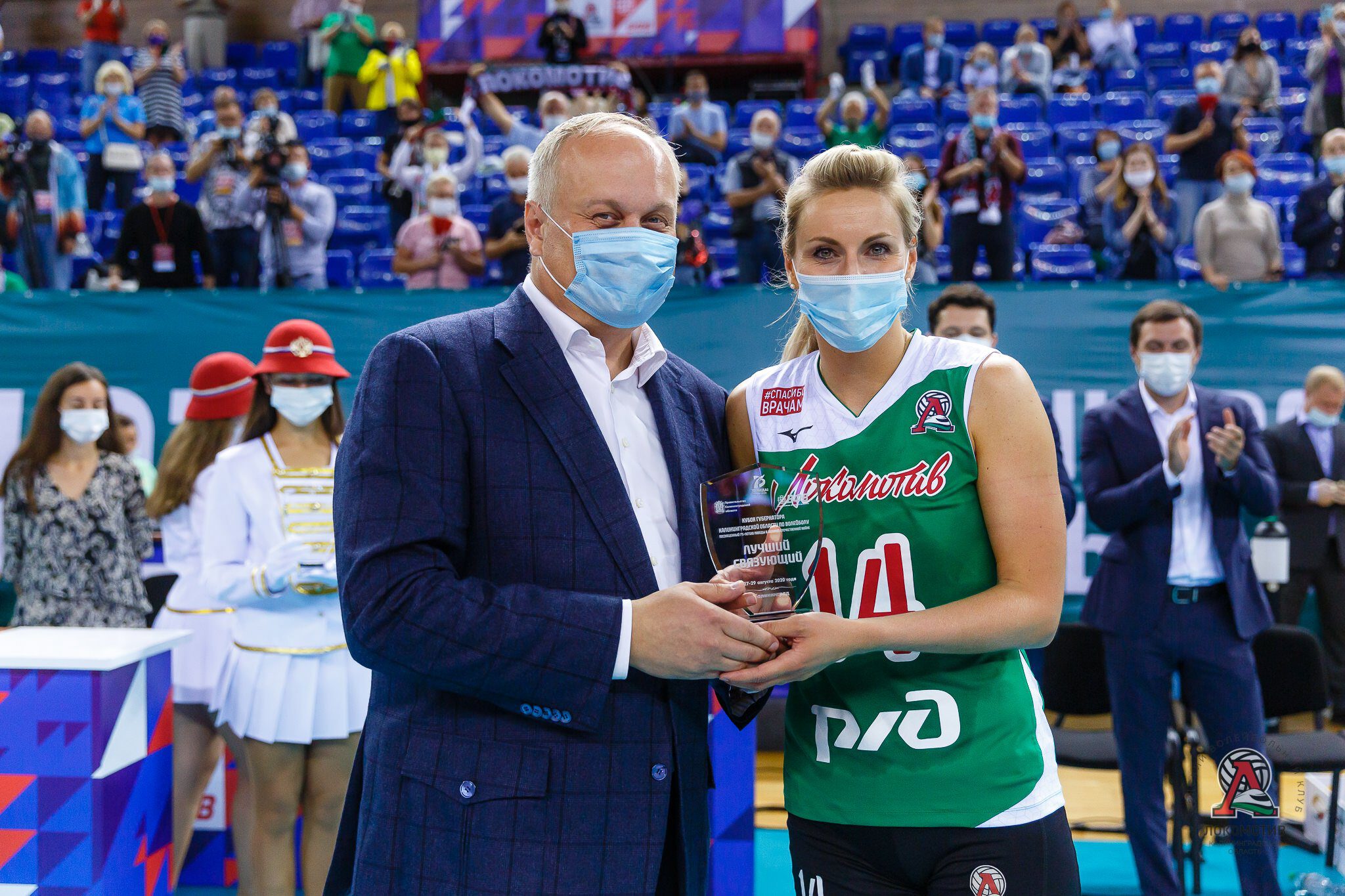 De medailleceremonie werd geheel 'coronaproof' gehouden, want de speelsters en staf namen met mondkapjes op de prijzen in ontvangst. Uralochka eindigde als derde en voor Dinamo Ak-Bars was er het zilver, waarna Lokomotiv Kaliningrad de winst mocht vieren en de medailles en beker overhandigd kreeg.