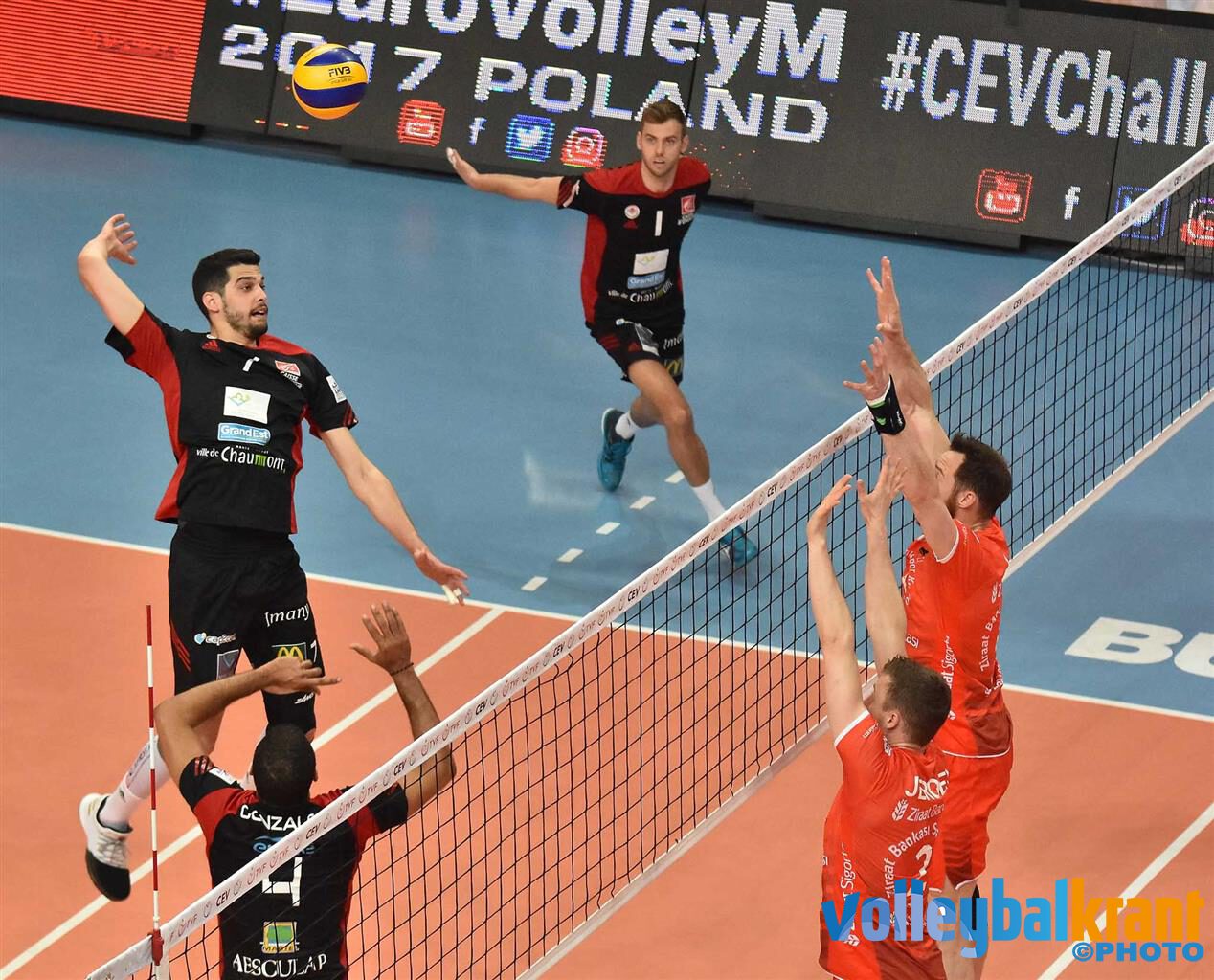 Na twee zeer gelijkwaardige sets, waarin de buit werd verdeeld, ging Chaumont vandaag vol vertrouwen de derde periode in. Dat vertrouwen bleek terecht, want die derde doorgang werd met ruim verschil op naam van de bezoekende partij geschreven, waarmee Chaumont zich verzekerde van deelname aan de grote finale. Vervolgens pakte Ziraat de vierde en vijfde set en daarmee de wedstrijd, maar behalve de eer koopt de Turkse ploeg daar dus weinig voor.
