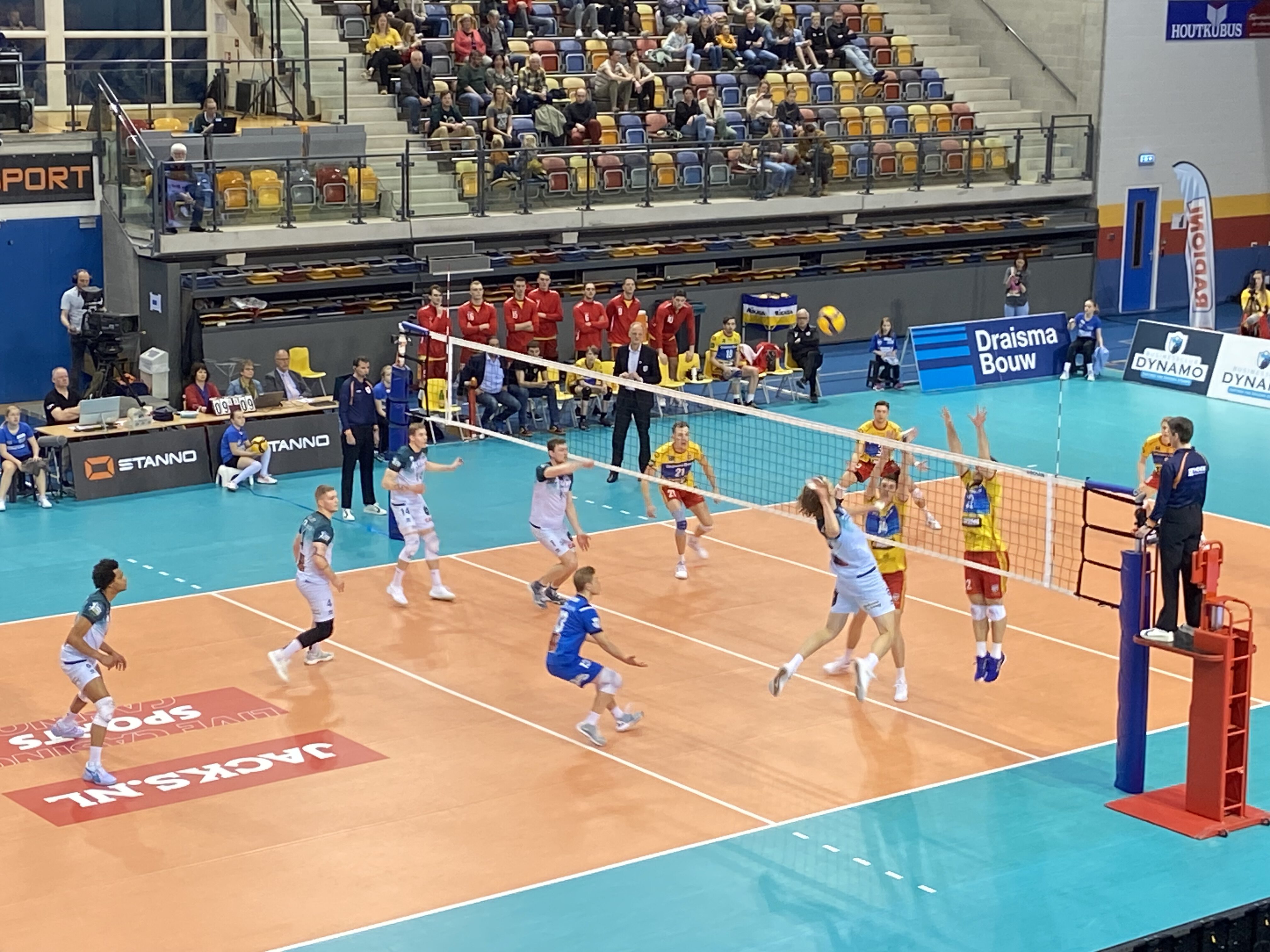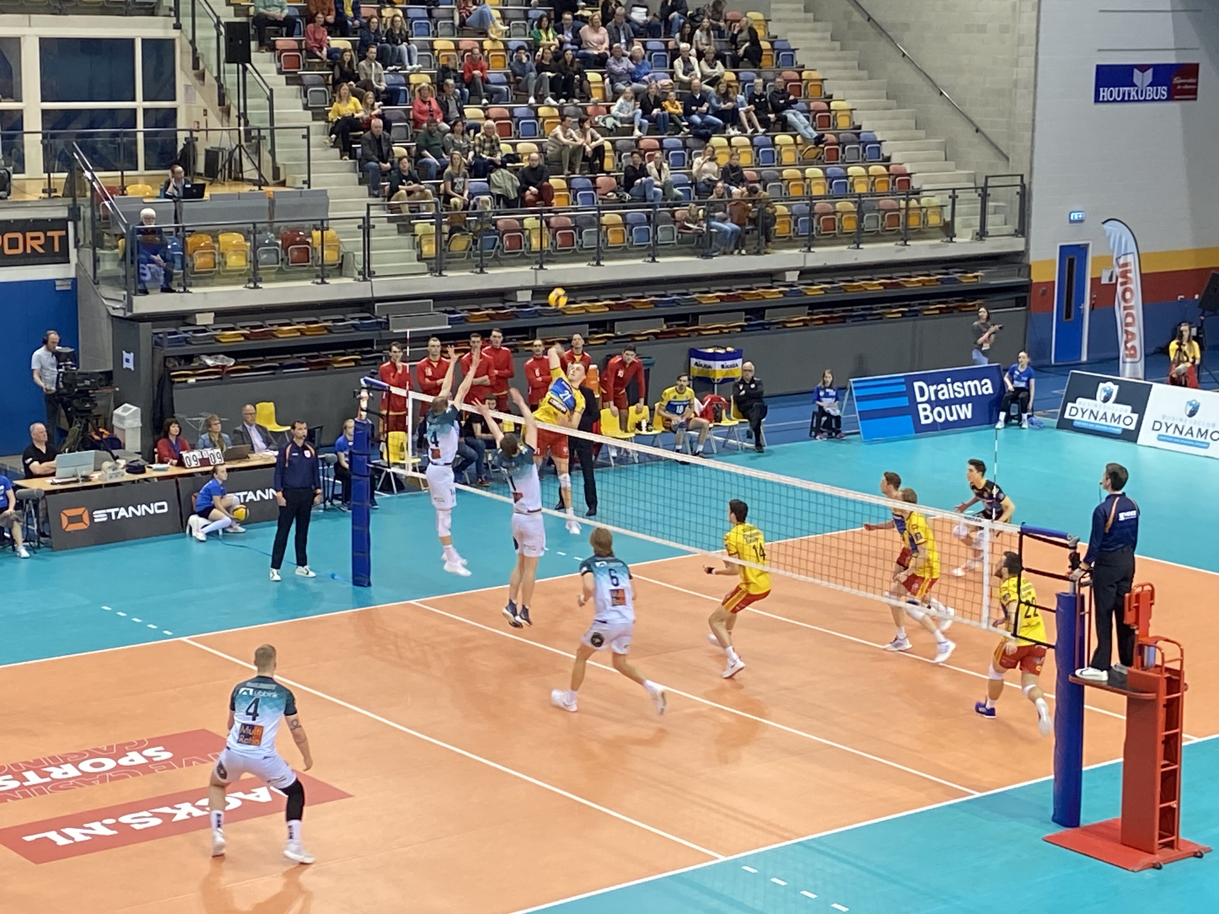 Draisma Dynamo, dat startte met Joris Berkhout, Yannick Bak, Robin Boekhoudt, Duco Krook, Martijn Brilhuis, Erik van der Schaaf en libero Niels Lipke, had het zeker in de eerste twee sets moeilijk tegen Active Living Orion. Vanaf 20-19 nam Yannick Bak zijn team op sleeptouw en bracht hij met een rake klap zijn ploeg op setpoint, 24-23. Een foute service van Edson Felicissimo namens Active Living Orion betekende 25-23.