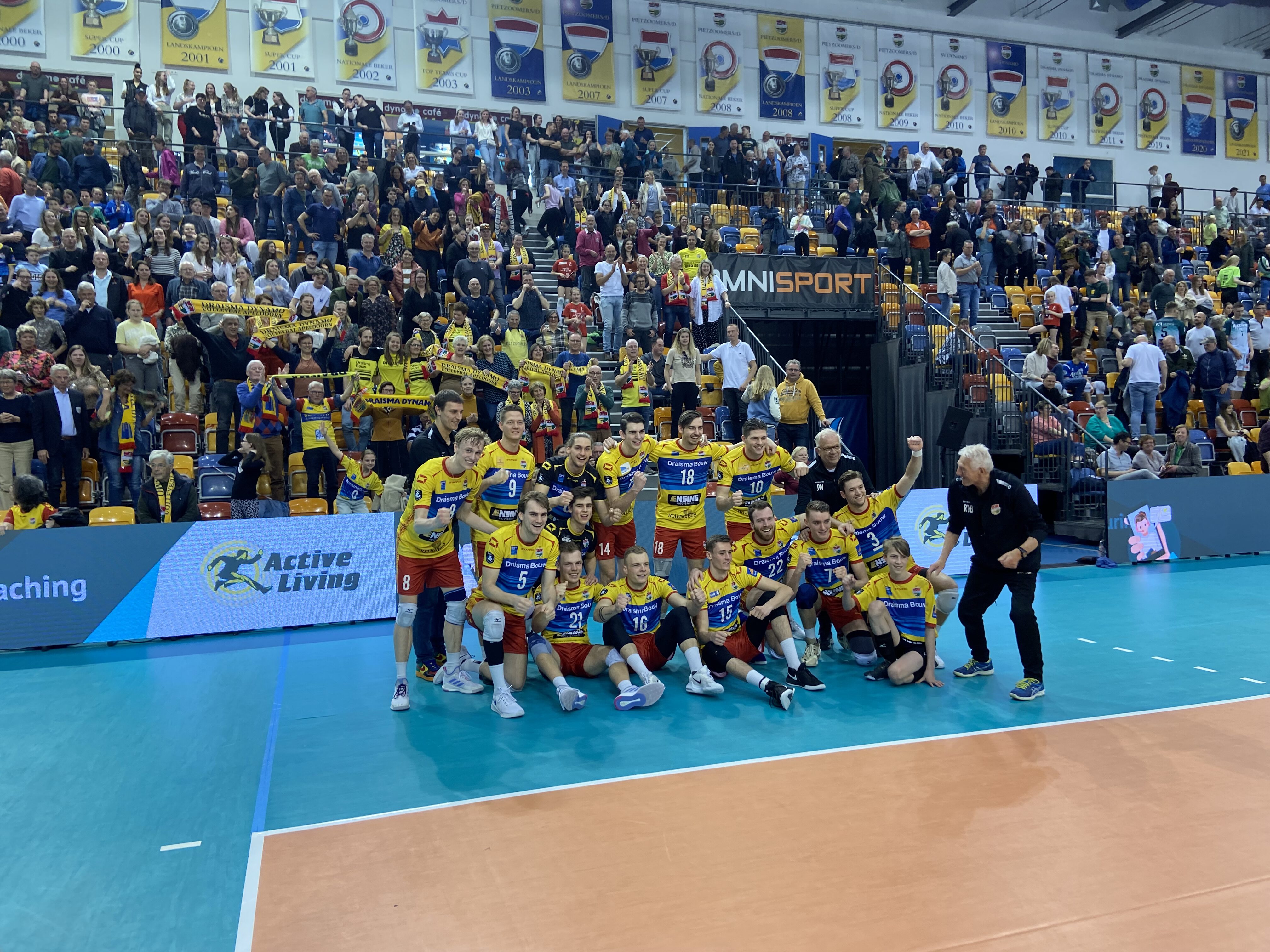 Active Living Orion, dat startte met Jannes van der Ham, Liam McCluskey, Samuli Kaislasalo, Edson Felicissimo, Jere Heiskanen, Jasper Diefenbach en libero Mats Bleeker, pakte in de tweede set een voorsprong van vier punten. Een tussenstand van 12-16 en 14-18 was echter niet toereikend om de wedstrijd in evenwicht te brengen. Met een rake klap van achter de drie meterlijn zorgde Yannick Bak dat zijn ploeg terugkwam tot 18-19. Even later zorgden Erik van der Schaaf en Robin Boekhoudt voor het Apeldoornse voordeel waarna Bak en Sil Meijs set twee binnensleepten. In set drie was het initiatief bij Draisma Dynamo dat bij 24-22 op matchpoint kwam. Bij het derde matchpoint was het raak nadat de Fin Samuli Kaislasalo uitsloeg namens de ploeg uit Doetinchem. ,,Wij pakken in de eerste twee sets de voorsprong maar geven die ook weer weg. In de derde set missen wij te veel ballen en was het niet goed genoeg van onze kant”, vatte libero Mats Belleker het samen namens Active Living Orion. Terwijl Yannick Bak handtekeningen uitdeelde aan jonge fans, wilde hij niet vooruitlopen op de titel met zijn ploeg. ,,Wij scoorden nu goed onze punten maar het is zaak deze reeks door te trekken. Door twee keer met 3-0 te winnen sparen wij energie maar die zullen wij ook hard nodig hebben voor het derde duel.” Druk voelt Yannick Bak niet. ,,Er komt wel wat stress bij kijken maar dat hoort erbij wanneer je hogerop wilt. Dat is wel het plan dat ik heb”, lachte hij voordat een nieuwe handtekening volgde.
