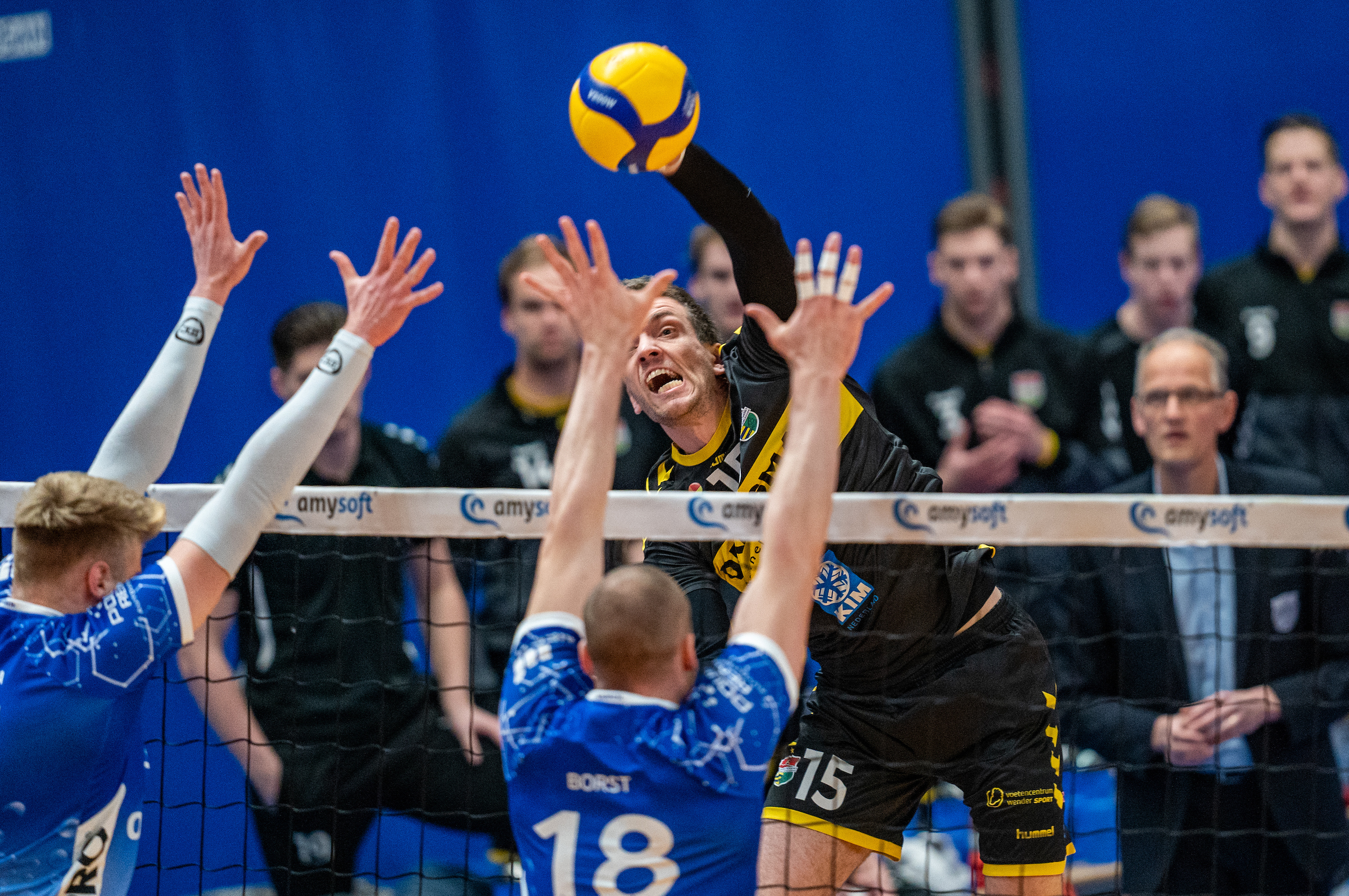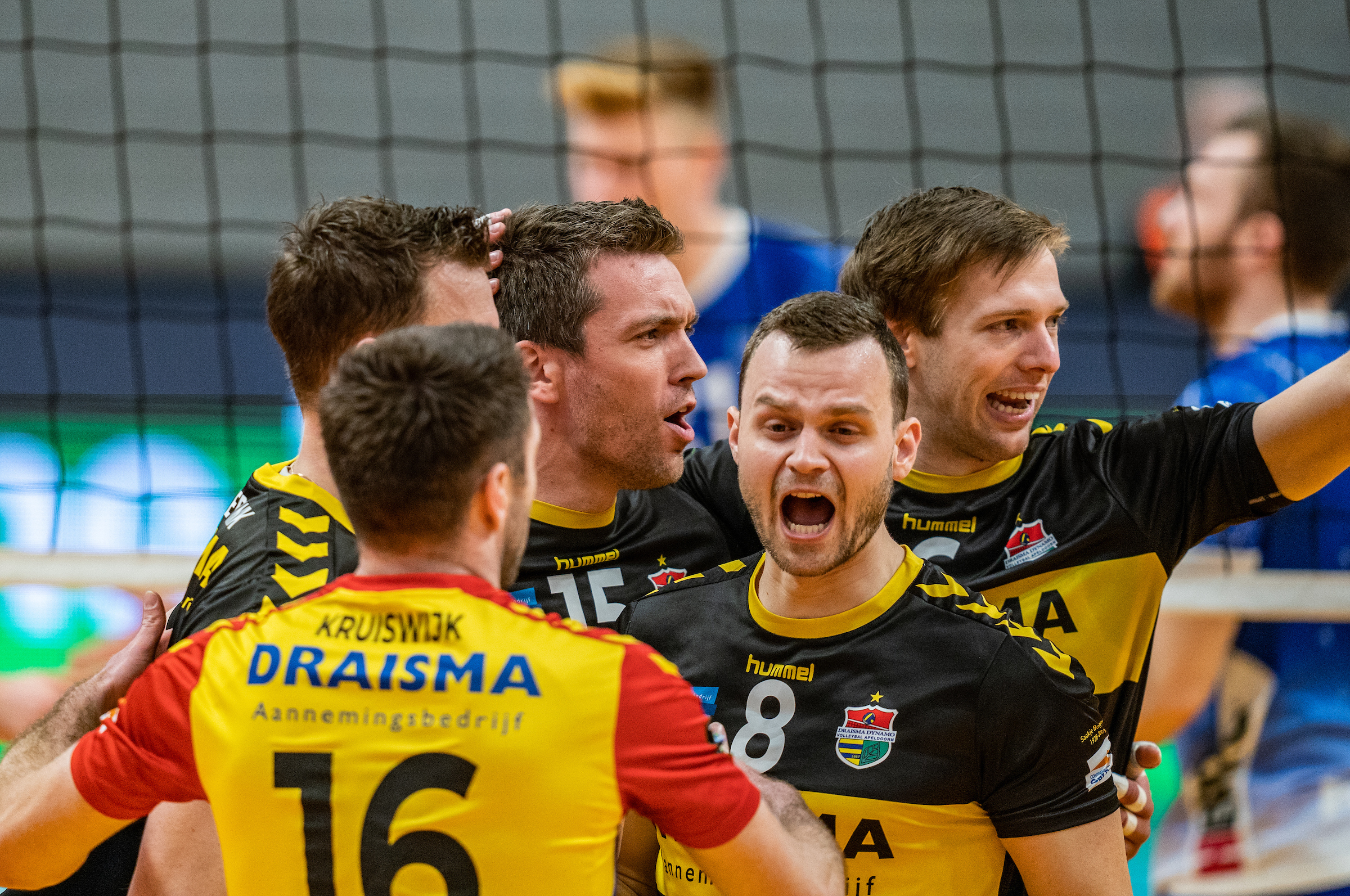 Ze stonden met de rug tegen de muur, de mannen van Redbad Strikwerda. Verliezen was geen optie meer en dat straalde de ploeg ook uit in het hoge noorden. In het Topsportcentrum Alfacollege, waar ze vorige week nog een nederlaag leden in de finale van de beker, startten ze furieus. Sjoerd Hoogendoorn opende sterk vanaf de servicelijn en al snel hadden de bezoekers een gat van zo’n vier punten.