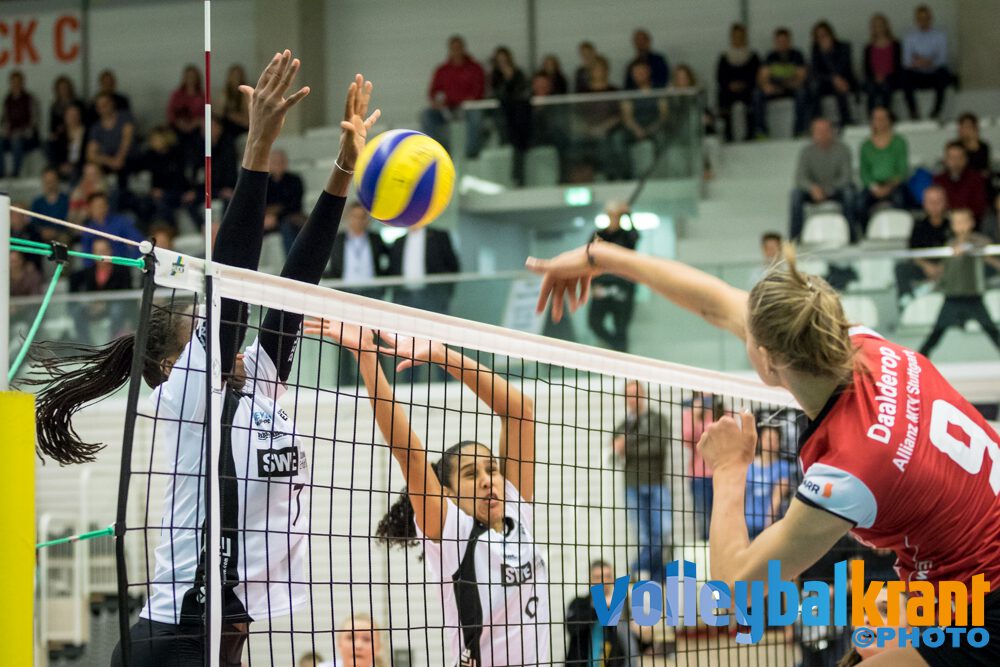 Dresden blijft de Bundesliga met harde hand regeren. Dit keer moest het gevaarlijke Wiesbaden er aan geloven in de weer met bijna 3000 fans volgepakte Margon Arena. Met Myrthe Schoot als libero en slechts een korte invalbeurt voor Marrit Jasper boekte Dresden de derde zege in zes dagen: 3-0 (25-20, 25-17, 27-25).