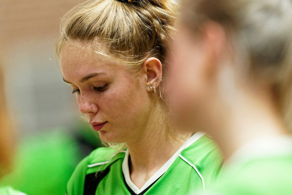 In een wisselvallige wedstrijd, die steeds allerlei kanten op ging, waren het de bezoekers uit Meijel die de voorsprong namen. In de eerste set was het verschil minimaal (23-25), in set twee een stuk groter (17-25). Zoals wel vaker knokte Dros-Alterno zich naar een setwinst. Voor eigen publiek kon het nipt de derde set naar zich toetrekken (26-24). Peelpush stond in de vierde set echter weer op scherp en gunde de thuisploeg geen punten. Via 12-25 werd het 1-3 voor Peelpush, dat daarmee nog niet kansloos is voor het bereiken van de kampioenspoule.