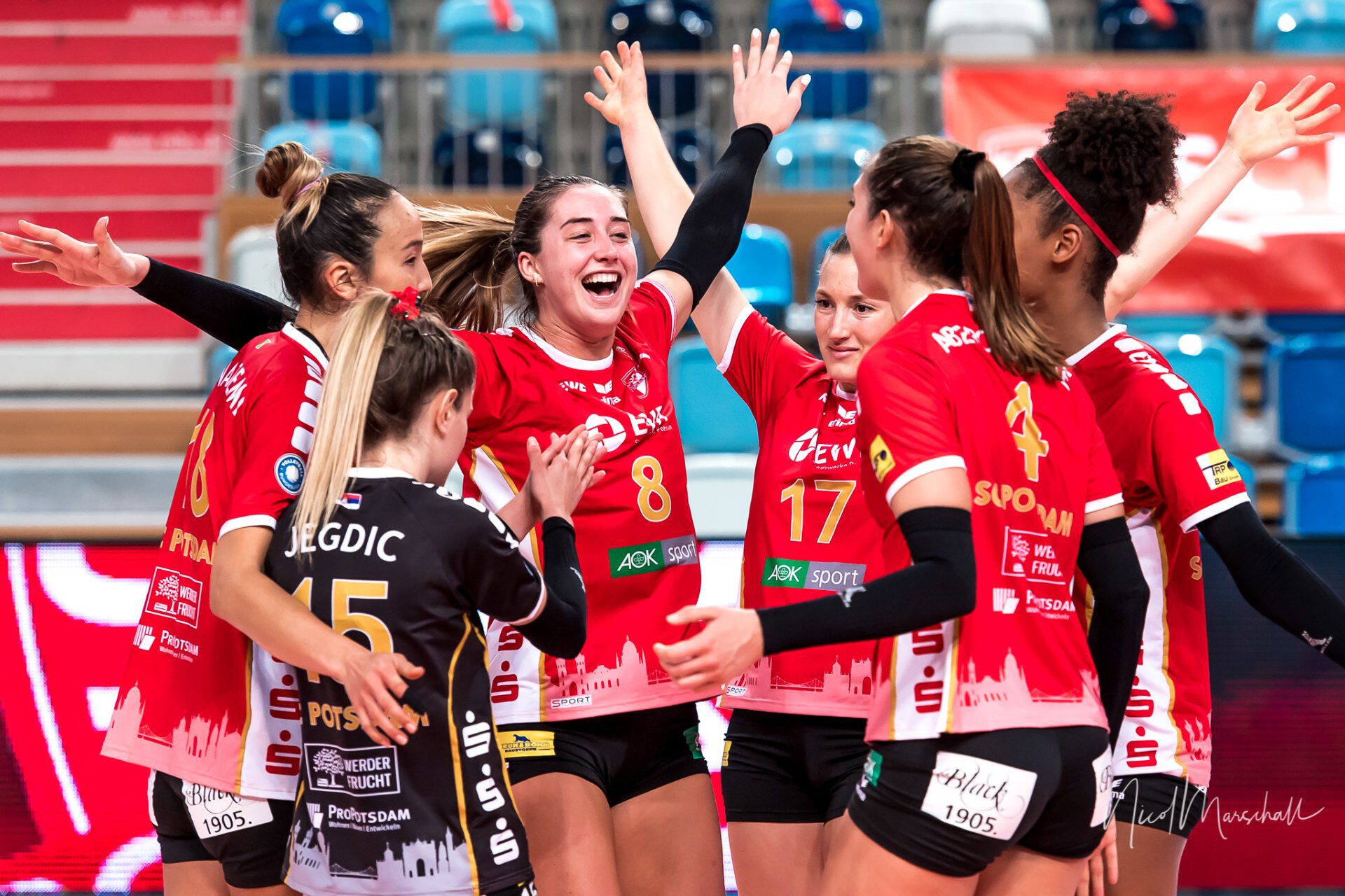 Suhl was zaterdag tegen de nieuwe koploper Potsdam volstrekt kansloos. Met de veelzeggende cijfers 25-13, 25-18 en 25-15 kon de terugreis worden aanvaard. Bij Suhl begonnen de Nederlandse speelsters Laura de Zwart en Dagmar Boom op de bank. Passer/loper Boom werd halverwege de 2e set ingebracht en mocht tot het einde van de wedstrijd blijven staan. Middenaanvalster De Zwart kwam halverwege de 3e set binnen de lijnen.