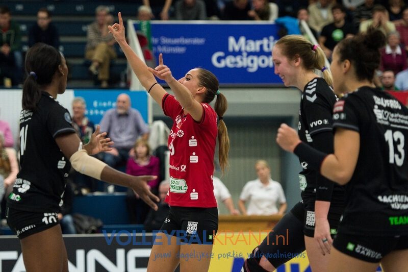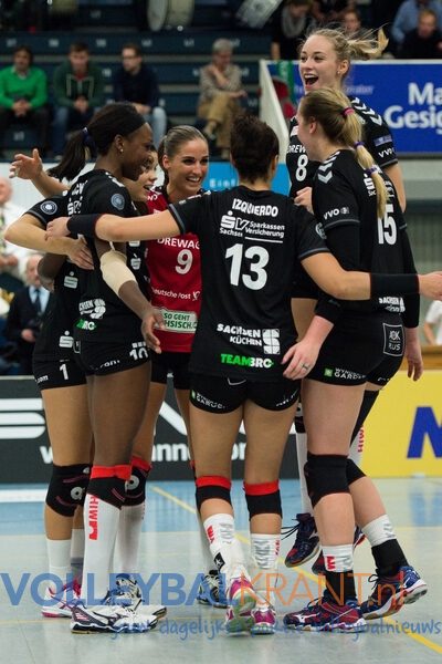 De beslissing viel pas na bijna 2,5 uur. Dresden nam in eigen huis een 1-0 voorsprong (28-26). Stuttgart kwam goed terug en nam de leiding over (17-25, 23-25). Met de nodige moeite kwam de ploeg van Schoot en Dijkema weer op gelijke hoogte (25-23).