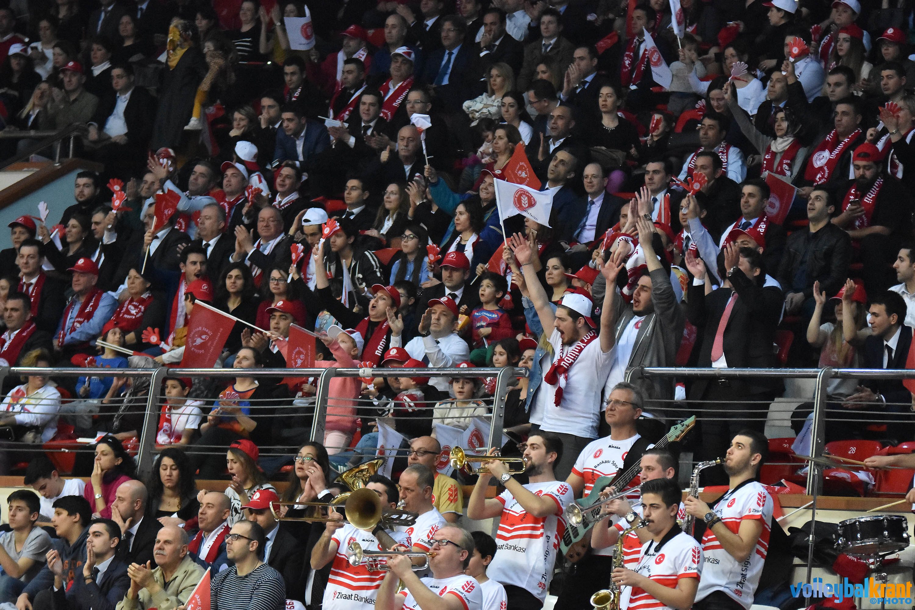 In een redelijk gevulde zaal in Izmir begon Dynamo zeer matig aan de eerste set. In de hal hing een waar Thialf-sfeertje, een dweilorkest zorgde voor de muzikale omlijsting. Het leek Dynamo van slag te brengen, zeker de trombone die klonk tijdens de service van de Apldoorners. Resultaat waren meerdere foutservices. Het grootste verschil was 19-10. De dubbele wissel (Keemink en Van Dorsten erin, Van Garderen en Manenschijn eruit) een punt eerder zorgde wel voor een kanteling. Blok en service werden beter. Uiteindelijk liet Ziraat het niet verder komen dan 25-20.