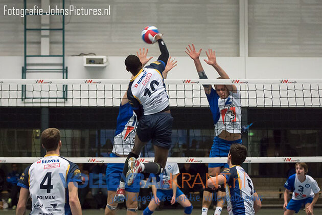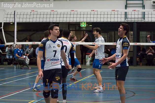 Dat was ook zeker de insteek van de thuisploeg, die zichzelf “kansen toedichtte”… Hoe vaak is dat cliché dit seizoen al in onze artikelen geslopen? Feit is dat Compaen in eigen huis een stuk beter speelt dan in den lande en er was dan ook behoorlijk wat publiek op het duel afgekomen. Dat zag vaste libero Mike Kruizinga met twee gekneusde vingers in z’n civiele kloffie op de tribune zitten, hij werd vervangen door derde spelverdeler Tijmen Arzbach en de 16-jarige Jasper Geerdink, en dat ging ze beiden zeker niet slecht af.