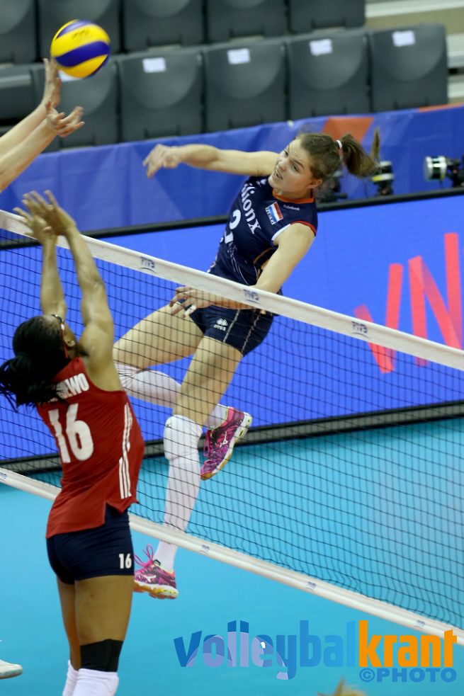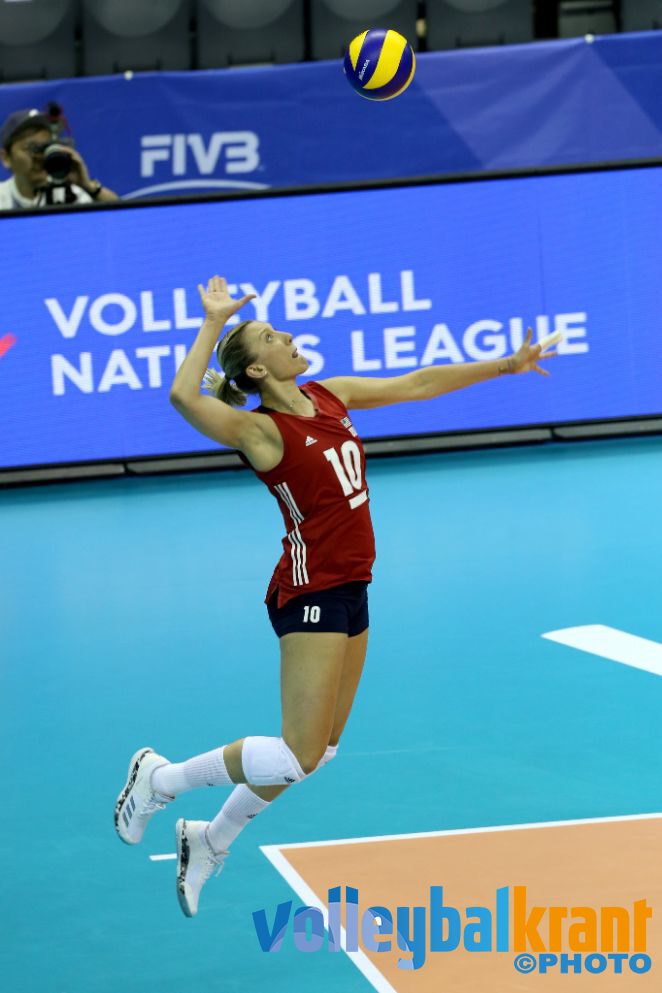Maret Balkestein-Grothues werd topscoorder voor Nederland met 13 punten, bij Amerika speelde Jordan Larson erg goed en scoorde 18 keer. Morgen krijgt Oranje de kans om de tweede week toch nog met een overwinning af te sluiten als ze om 12.00 tegen gastland Japan spelen. Ook deze wedstrijd is weer live te zien bij Ziggo Sport.