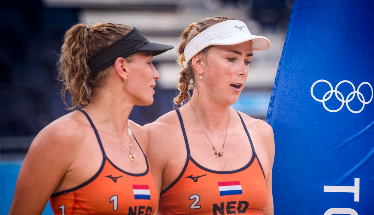 In Tsjechië waren Sanne Keizer en Madelein Meppelijk anderhalve maand geleden nog te sterk voor het Amerikaanse topduo. April Ross - dat tijdens haar derde Olympische Spelen voor een derde medaille gaat - en haar parter Alix Klineman zijn echter topfavorieten. Daarnaast was Amerika al geplaatst voor de volgende ronde, terwijl Nederland moest winnen. Sanne en Madelein begonnen de wedstrijd gelukkig goed en lieten geen kansen onbenut. Een kleine voorsprong werd tot halverwege de set aangehouden, totdat Ross/Klineman langszij kwam (15-15). In een mooie, gelijk opgaande strijd bracht Keizer Nederland later het eerste setpunt (20-19). Deze werd nog weggewerkt, maar twee punten later was het Meppelink die met een blok de belangrijke setwinst verzekerde (22-20).