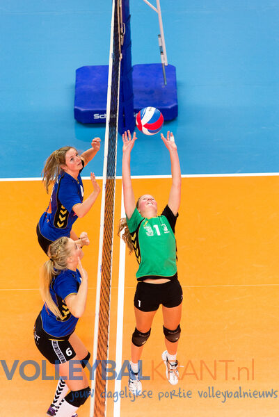De 3e set liet een gelijkmatig verloop zien waarbij beide teams om beurten een kleine voorsprong wisten te nemen, met een licht voordeel voor VC Zwolle. Aan de hand van een paar keer goed scorende Anouk van Wijk wist VC Zwolle halverwege deze set de eindsprint in te zetten en de set uiteindelijk met de overtuigende cijfers 25-28 binnen te halen.