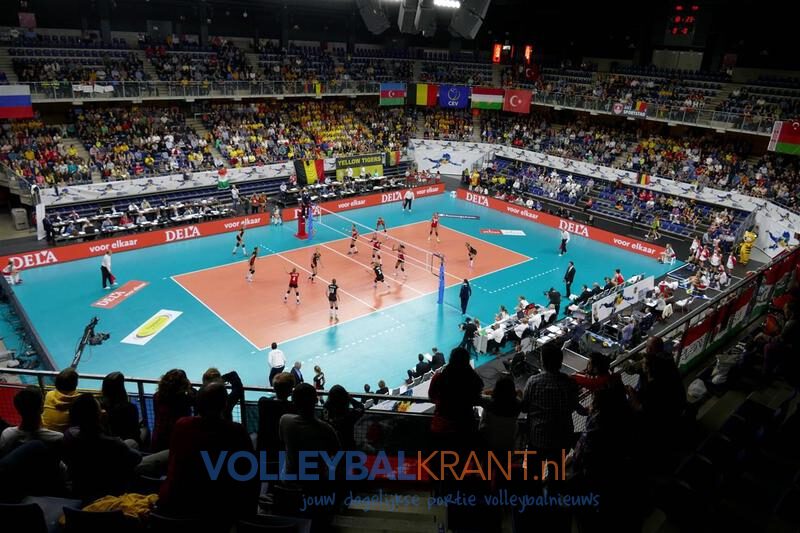 Het EK wordt vandaag hervat met de play-offs, die in Rotterdam en Antwerpen worden gespeeld. Ahoy en de Lotto Arena hebben een capaciteit van ongeveer 11.000 respectievelijk 8.000.