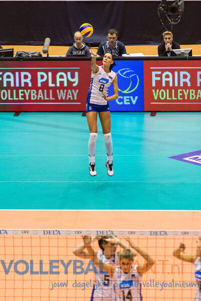 Ook Italië deed wat er verwacht werd en won van Slovenië. In de eerste twee sets scoorden de Italiaanse speelsters punt na punt (25-9, 25-12). Verrassend trok Slovenië de derde set naar zich toe (25-27). Italië maakte het vervolgens in de vierde set wel af.