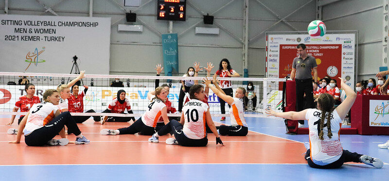 De zitvolleybalsters, die met een onervaren selectie afgereisd waren naar het EK, wisten hun allerlaatste wedstrijd van het toernooi tegen gastland Turkije te winnen. Alle speelsters kregen speeltijd, Evi Groniger werd met veertien punten topscoorder in het duel om de tiende en elfde plaats op het EK. Door de overwinning (25-17, 25-12, 25-12) sloot Nederland het EK op de tiende plek af.