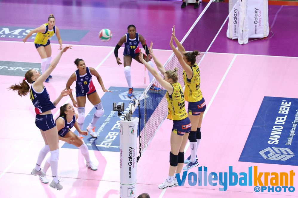 Hoewel het bij de wedstrijd tussen Scandicci en Conegliano een stuk spannender was, ging Conegliano er alsnog in drie sets met de zege vandoor. Scandicci was in de laatste speelronde van de reguliere competitie in de stand nog over Conegliano heen gewipt, maar het thuisvoordeel kon het team niet helpen. De pass-lijn, normaal een moeilijk onderdeel voor Conegliano, bleef dit keer fier overeind en zorgde ervoor dat alle aanvalsters naar hartelust konden aanvallen. De foutenlast van de gasten zorgde er echter voor dat de thuisploeg de eerste twee sets dichtbij bleef. Uiteindelijk gingen die sets nipt (twee keer 23-25) naar Conegliano, dat in de laatste set een aardige marge had opgebouwd en die niet meer uit handen gaf (20-25). Samantha Fabris werd topscoorster met 20 scores, Isabelle Haak werd door Conegliano goed afgestopt en kwam slechts tot 12 punten.