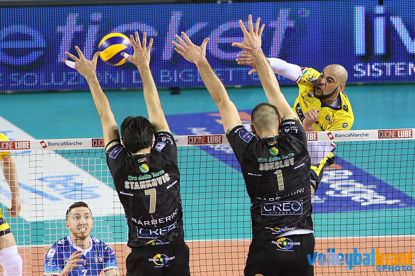 Civitanova had voor bijna 4500 toeschouwers de nodige moeite om Modena (de nummer vier van de ranglijst) onder de duim te houden. Dat kwam vooral omdat de Earvin Ngapeth de regerend kampioen lang in de strijd hield. De passer/loper uit Frankijk scoorde 31 punten, maar kon het niet alleen: 3-2.