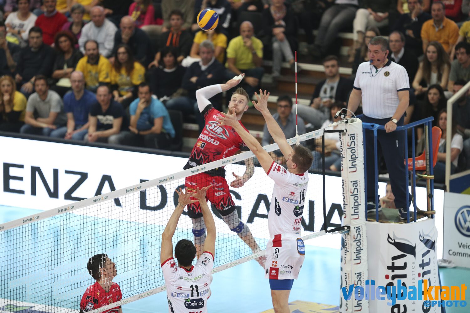 Trentino had in eigen huis (gevuld met 3890 toeschouwers) vier sets nodig om Perugia te verslaan. De lange Belgische middenaanvaller Simon van de Voorde had een belangrijk aandeel in de winst van Trentino. Hij scoorde 13 keer (8 aanvallen, 3 directe punten met zijn opslagen en 2 bloks).