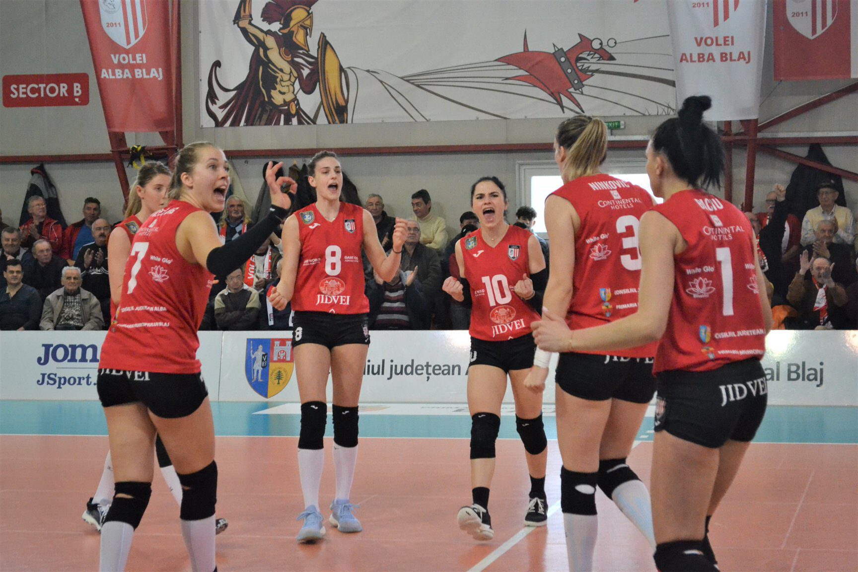 Alba Blaj zette almeteen in de1ste set de toon door die met 25-18 te winnen. Met Femke Stoltenborg in de basis en Kirsten Knip op de bank was op 11-5 het beslissende gat al gelagen. Via 16-9 en 20-14 was de setwinst al snel een feit. In de twee daaropvolgende sets moest de thuisploeg voor de 500 fans toch nog flink aan de bak. In de 2e set kwamen de bezoeksters zelfs op een 10-14 voorsprong en maakten duidelijk dat ze niet waren afgereisd om zich af te laten slachten. Op 19-21 begon Alba Blaj aan een eindsprint en kwam op 24-21 het eerste setpoint. Met 25-23 was de 2-0 voorsprong een feit. De 3e set kende een vergelijkbaar verloop. Bucuresti kwam op voorsprong maar de thuisploeg kwam op tijd langszij. De 12-10 voorsprong werd nog wel even weggegeven bij 15-16. Alba Blaj hield het hoofd koel en was er met 20-17 weer vandoor. Met 25-22 was de fraaie winst een feit. Femke Stoltenborg speelde een prima partij en wist als spelverdeelster zelfs 9 eigen punten te scoren, 4 aanvallende, 3 keer met een killblock en 2 keer met de serve.