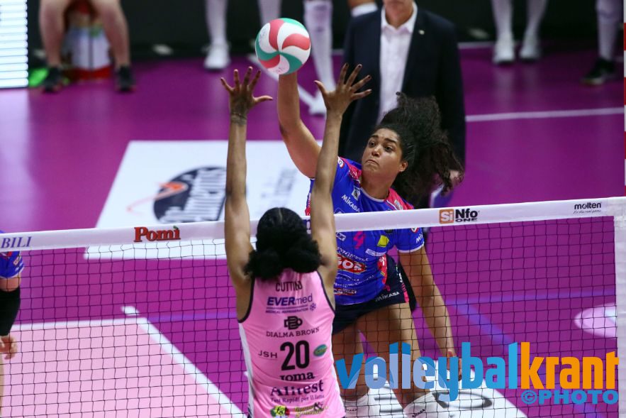 De ontmoeting tussen Busto Arsizio en Monza werd een duel tussen de winnaar van de CEV Cup en de winnaar van de Challenge Cup. Voor Floortje Meijners was er, opnieuw op de diagonaalpositie, een basisplaats weggelegd. Dat gold niet voor Anne Buijs aan de kant van Monza. In een aantrekkelijk duel voor zo'n 2400 toeschouwers kwamen de gasten op voorsprong (22-25). Mede dankzij een goed blok en aanvalsdruk kwam Busto Arsizio langszij (25-17 en 25-20). De vierde set ging weer naar Monza (19-25), waarna een tiebreak de beslissing moest brengen. Die ging uiteindelijk met 15-12 naar de thuisploeg. Meijners werd topscoorster met maar liefst 33 punten. Ze scoorde 29 aanvallende punten en voegde daar 3 killblocks en 1 ace aan toe. Voor Monza scoorde Hanna Orthmann 30 punten. Buijs kwam tot 2 korte invalbeurten en scoorde niet.