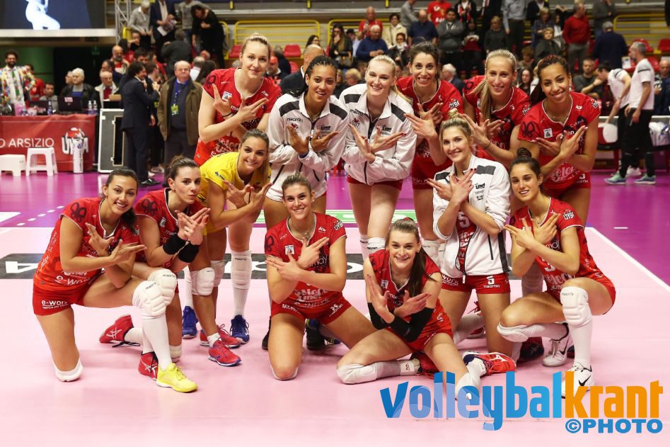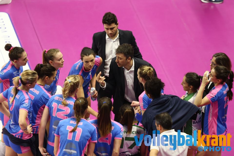 Firenze verraste vriend en vijand door het eerste play-off duel van Novara te winnen en ook nog met overtuigende cijfers. Novara had afgelopen week nog indruk gemaakt met winst op Vakifbank in de Champions League, maar de ploeg van Barbolini was nu geen schim van het team wat toen zo overtuigde. Vooral de foutenlast lag ontzettend hoog aan de kant van de bezoekers, die alleen in de eerste set al 12 punten cadeau gaven aan Firenze. De ploeg van Laura Dijkema en Nika Daalderop speelde daarentegen een zeer stabiele wedstrijd en kwam in elke set geen moment in gevaar: 25-20, 25-22 en 25-17. Daalderop kwam tot 9 punten en Dijkema pikte ook nog 2 scores mee. Celeste Plak kwam elke set binnen de lijnen en startte in set drie. Ze scoorde 5 keer.