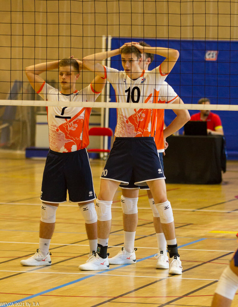 Youri Ebbelaar kwam bij aanvang van de derde set binnen de lijnen. Macnack mocht weer starten en terecht, want hij is het grootste talent in dit team. Door twee aces van de Franse passer-loper met een heel onorthodoxe opgooi opende Frankrijk met 1-4. Die achterstand kon Oranje niet meer wegwerken en op 7-12 werd Thomas Sleurink weer ingewisseld voor Kian Macnack. Later viel ook Beau Wortelboer nog in. Op de service van Guus Boer kon Oranje de schade beperken tot 17-22. Het werd het uiteindelijk 19-25 voor Frankrijk.