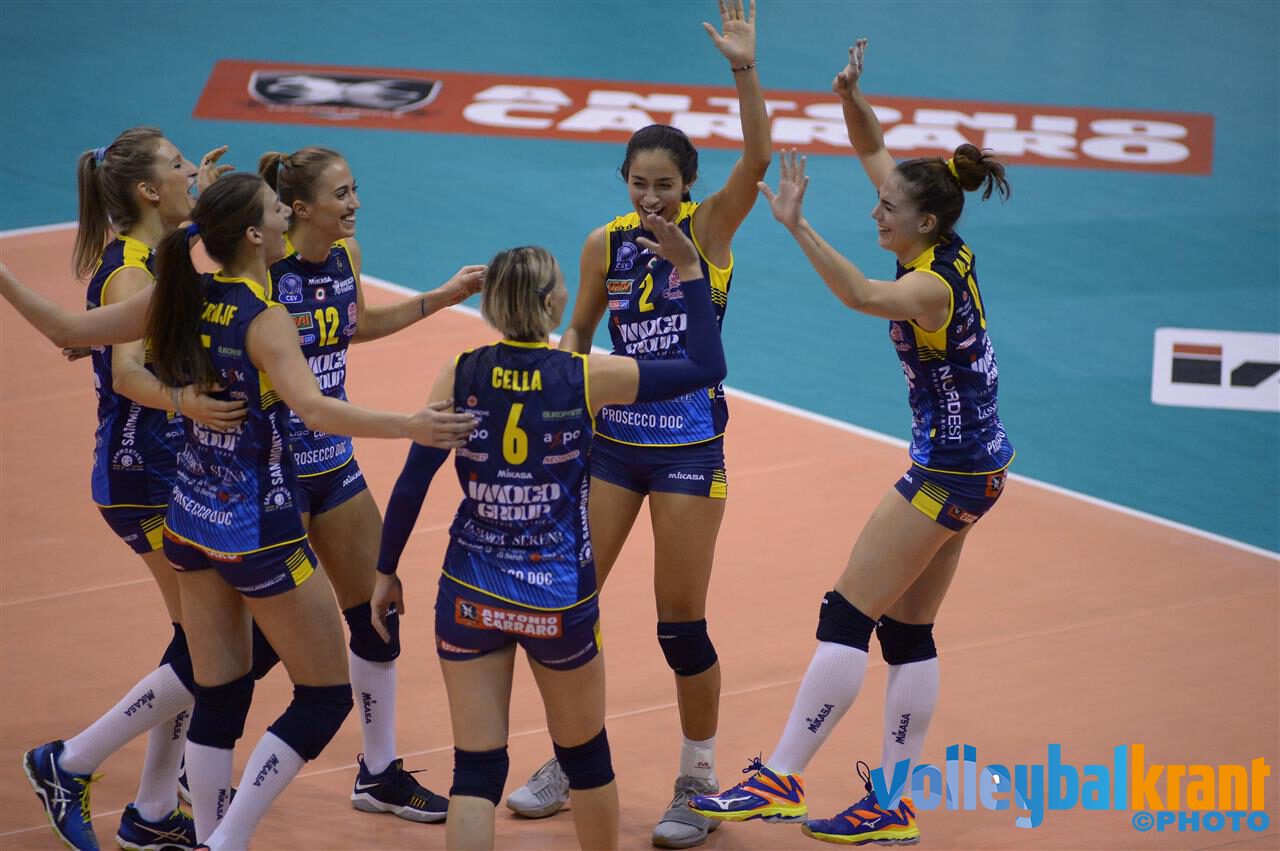 Wie dacht dat Conegliano na het halen van de volgende ronde wat gas terug zou nemen, had het flink mis. Met een verbluffende 25-7 maakt de Italiaanse topploeg nog maar een keer duidelijk dat het een gevaarlijke ploeg heeft met een goede service en sterke aanvalsters die op maat bediend worden door beide spelverdeelsters.