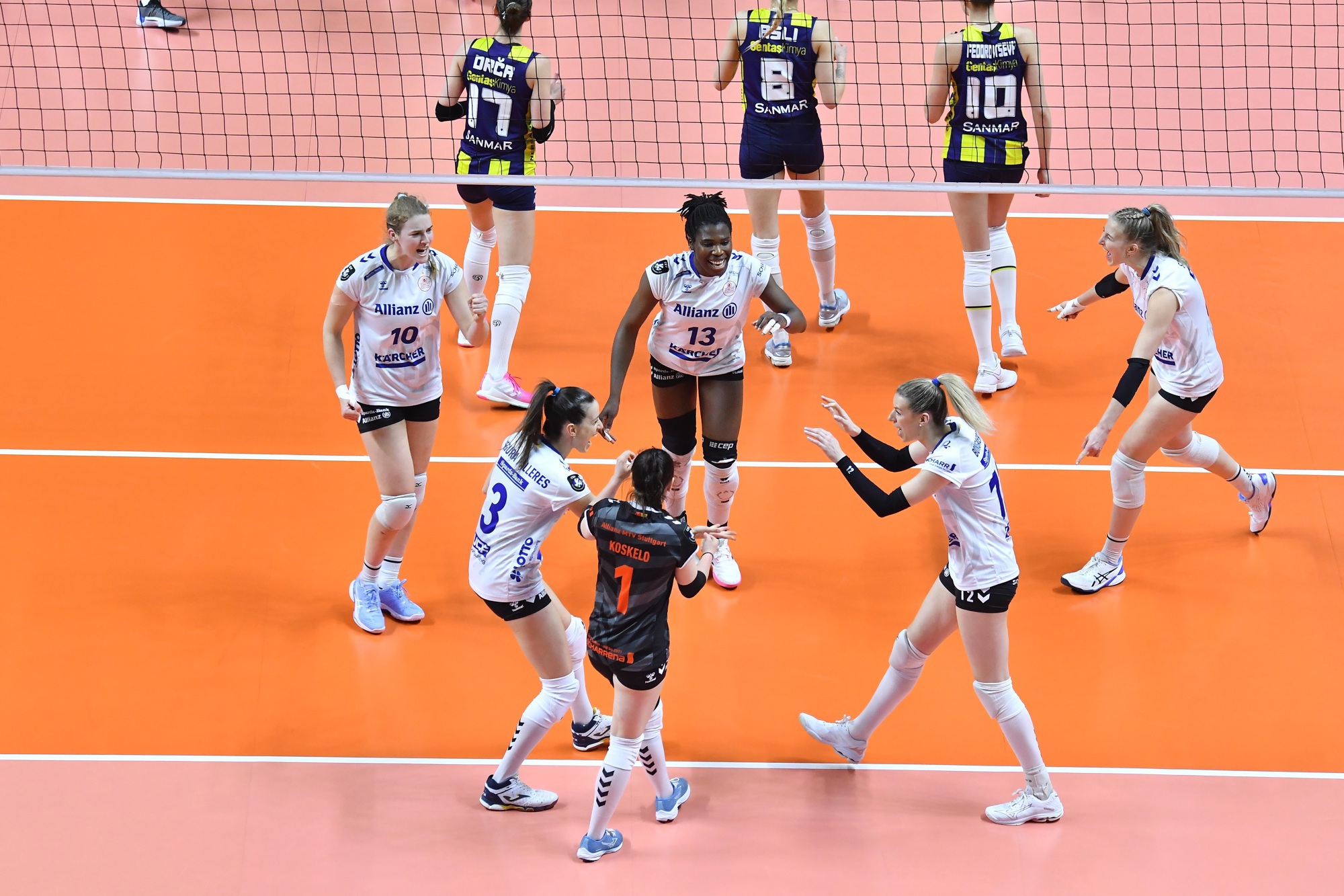 Vorige week stuntte Allianz MTV Stuttgart in eigen huis door in vijf sets te winnen van Fenerbahçe Opet Istanbul. Dankzij die overwinning, waarin de Nederlandse internationals Jolien Knollema, Eline Timmerman en Britt Bongaerts een hoofdrol hadden, had de Duits kampioen een goede uitgangspositie gecreëerd voor de return die woensdagavond gespeeld werd. Van onderschatting was bij Fenerbahçe Opet Istanbul dit keer echter geen sprake. Voor eigen publiek, maar liefst zevenduizend toeschouwers zaten in de zaal, vloog de Turkse topclub uit de startblokken. De blokkering van Fenerbahçe stond als een huis en Stuttgart werd bij vlagen weggespeeld in de eerste twee sets (25-15, 25-15).