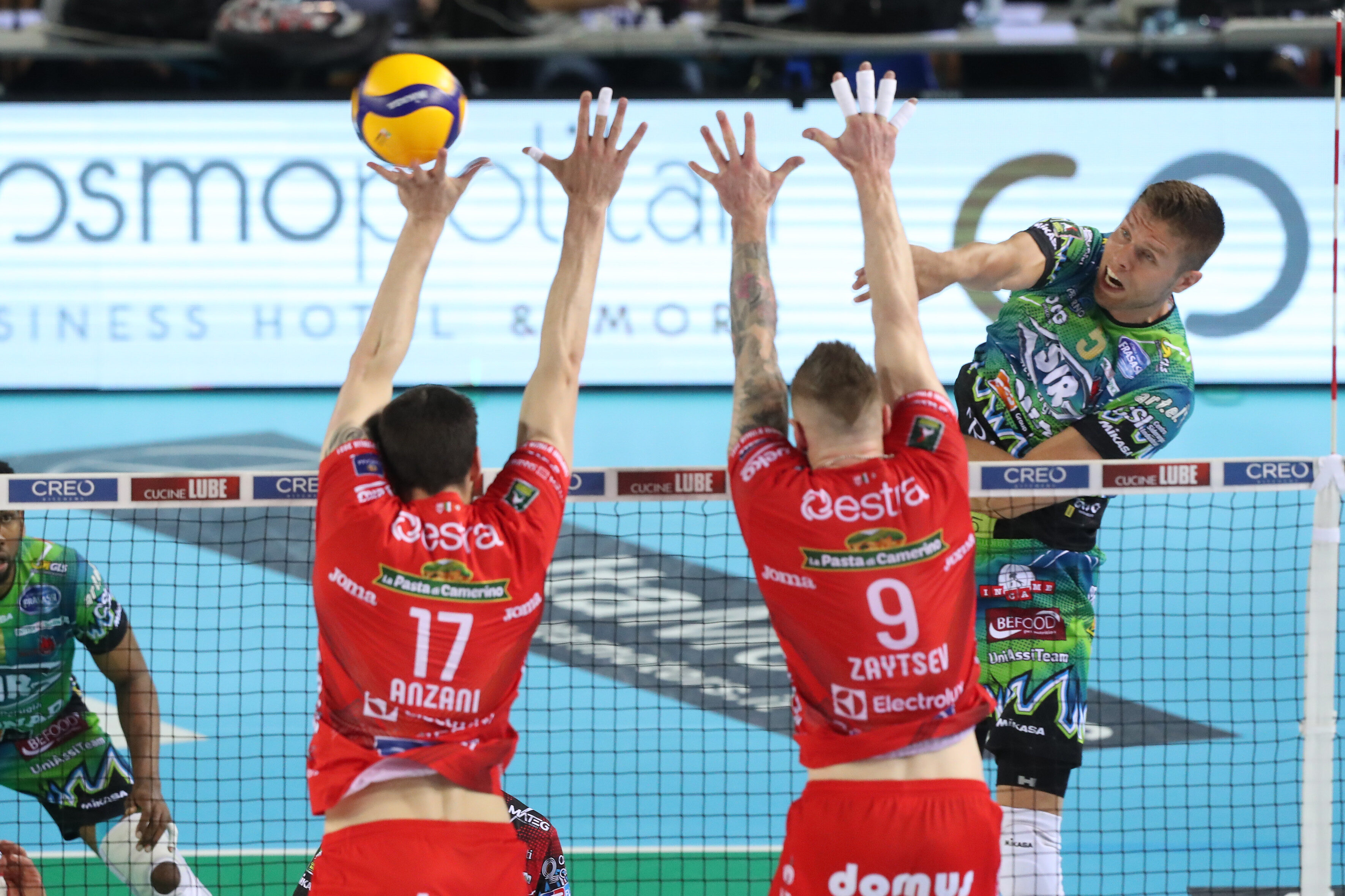 Zoals gezegd lukte het Civitanova om op een 2-0 voorsprong te komen in de finaleserie. Perugia moest nu alle wedstrijden winnen en afgelopen zondag was daar de eerste winst. In eigen huis was het (ondanks het verliezen van de eerste set) 'ouderwets' dominant. De belangrijkste man Wilfredo Leon liet eindelijk zijn klasse zien en mede door zijn 21 punten (5 aces en 62% aanval) deed Perugia wat terug in de serie (2-1).