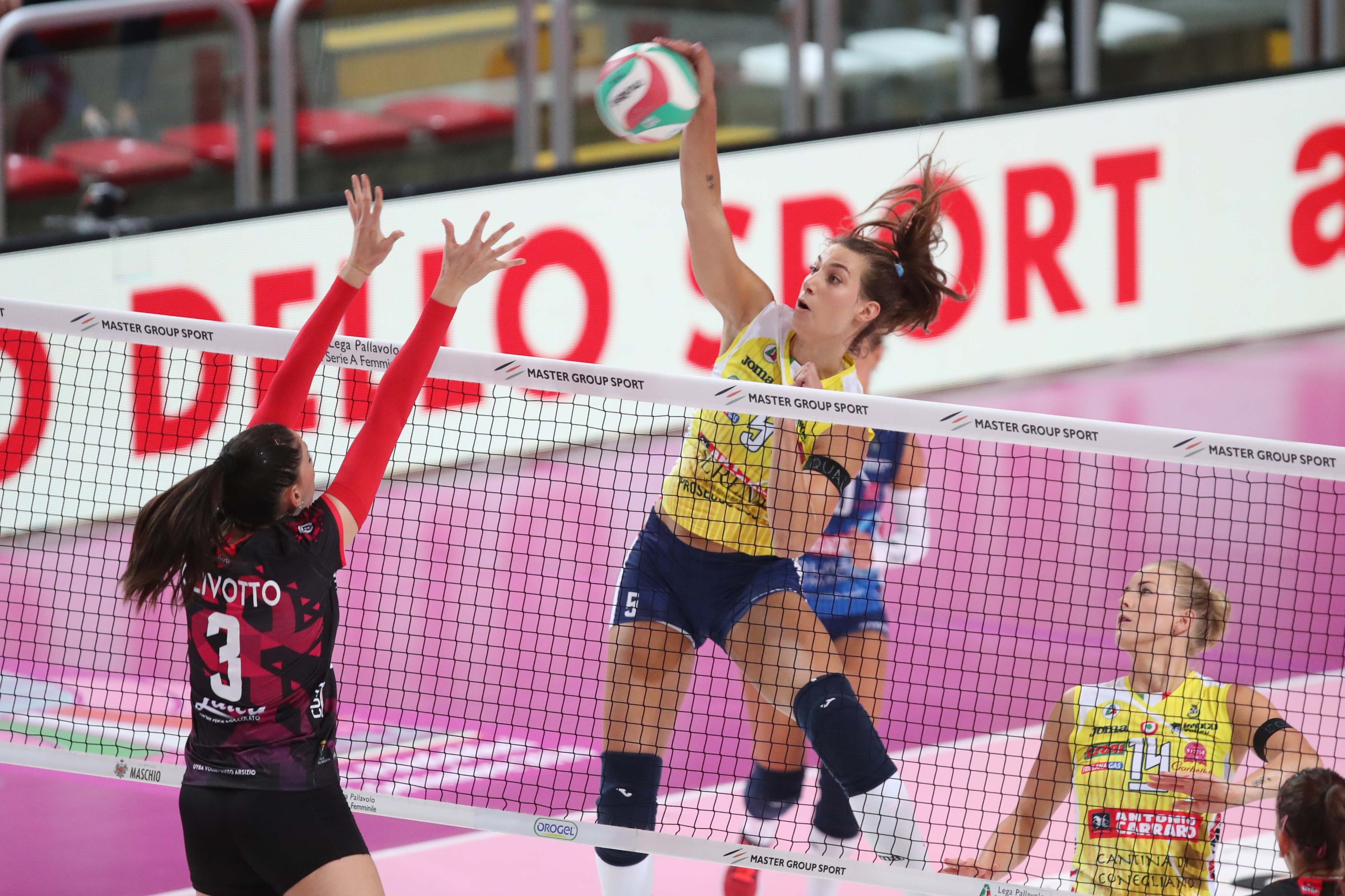 Il Bisonte Firenze hield aan de spannende wedstrijd tegen Bernardo Cuneo geen punten over. Ondanks de 26 scores van uitblinkster Terry Enweonwu ging Firenze met 1-3 onderuit. De eerste twee sets werden met minimaal verschil beslist (25-23, 23-25), maar met twee keer 21-25 ging de zege naar Cuneo. Yvon Beliën speelde de hele wedstrijd en scoorde elf keer.