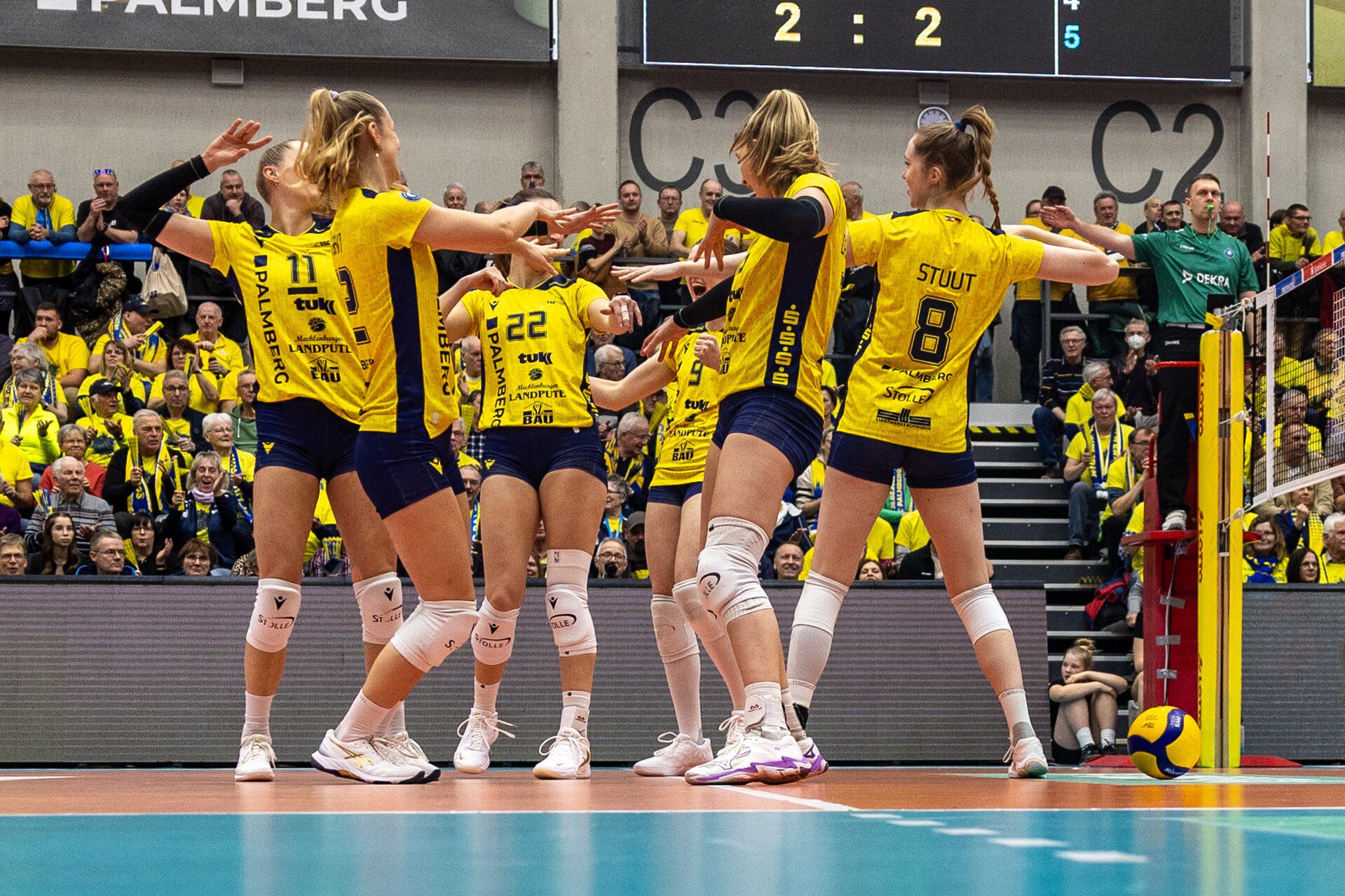 In de eerste ontmoeting tussen de nummer twee Allianz MTV Stuttgart en nummer zeven USC Münster betekende ook een duel met de nodige Nederlandse inbreng. Bij Stuttgart had Jolien Knollema (10 punten) een basisplaats en begon Florien Reesink op de bank, aan de zijde van Münster stond Marije ten Brinke (1 punt) in de basis en keken Pippa Molenaar en Rosa Entius (5 punten) in eerste instantie vanaf de kant toe. De regerend landskampioen bleek duidelijk te sterk voor de verliezend bekerfinalist. Met veel meer aanvallende scores, meer killblocks en minder fouten was er van spanning geen sprake tussen Stuttgart en Münster (25-16, 25-15, 25-15).