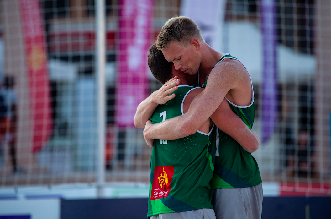 Boehlé en Boermans walsten vervolgens in de halve finale over de Oostenrijkers Kopschar en Murauer heen en zo stond het gisteren wederom tegenover het thuisspelende duo Aye/Gauthier-Rat. Dit duo presteerde de laatste tijd goed, want tijdens het 3-sterren toernooi in Letland twee weken geleden wonnen ze de poule en werden ze in de kwartfinale pas uitgeschakeld door Samoilovs /Smedins. Tijdens de groepsfase in Montpellier waren onze Dirk en Stefan echter al te sterk, en ook in de finale kregen ze de wedstrijd niet onder controle tegen de Nederlanders. De eerste set was wederom om te smullen. Met een eindstand van 25-23 ging de set naar Nederland. In een finale van een World Tour, met het thuispubliek tegen je, en dan ook de belangrijke punten winnen zegt veel over dit duo. De mentale strijd was gewonnen en na een sterke tweede set (21-15) mochten Boehlé en Boermans zich World Tour-winnaars noemen. Door deze knappe prestatie heeft Nederland er zo weer een nieuwe gouden plak op de World Tour bij. Gefeliciteerd Dirk en Stefan!