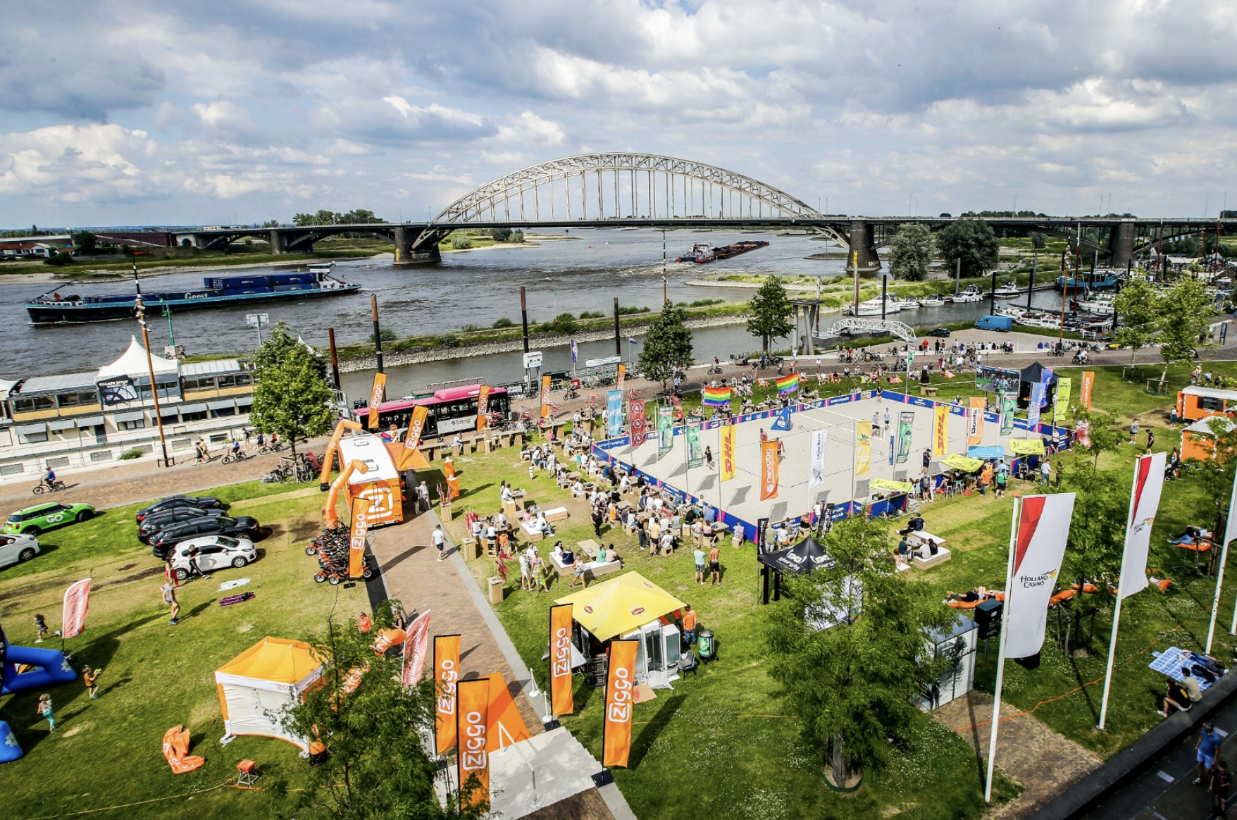 Met het Centre Court aan de Waalkade, vlak voor restaurant Vief en de twee bijvelden bij Aiolos Beach, was het een prachtig decor voor de top van het Nederlandse beachvolleybalcircuit. Dankzij de vele terrassen rondom, het mooie weer en de vele sport- en spelactiviteiten die door partner Ziggo werden georganiseerd werd het ook voor het afgereisde publiek een groot feest. Maar niet alleen de entertainment rondom de wedstrijden zorgde voor een mooi evenementen. Er waren veel spannende wedstrijden van hoog niveau te bewonderen in Nijmegen afgelopen weekend.