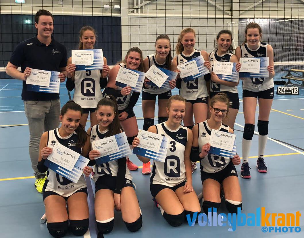 Ook meisjes B3 van Sliedrecht pakte dit weekend het kampioenschap. Zaterdag moest er door het team van Dunya de Rover, Narin Takac, Sofie van Voorst, Bridget Dekker, Loïs Spek, Annelies de Bruin, Sanne van der Es, Sarah de Raad, Marit Baan, Bodhi Struijk, trainer-coach Arjen Broersma en trainer Bram van Rijsbergen wel nog twee punten gescoord worden tegen de buren van OKK. Zenuwen alom, maar uiteindelijk onnodig. Met een 4-0 nederlaag gingen de Hardinxveldsen weer de gemeentegrens over en was het kampioenschap voor MB3 een feit.