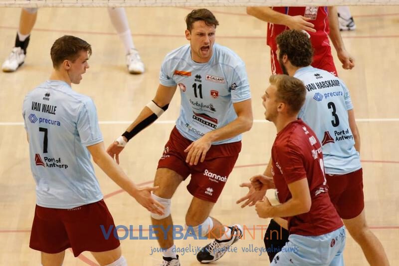 Antwerpen had weinig problemen met Liga B-laagvlieger Berlare-Zele dat verrassend tot de kwartfinales was doorgedrongen. Yannick van Harskamp dirigeerde zijn ploeg naar een snelle zege. Antwerpen kwam met veel servicedruk snel op voorsprong en de moeilijke service zorgde ervoor dat Thomas Koelewijn en Bas van Bemmelen zich aan het net met hun blokkering konden onderscheiden. Na 14-25 en 11-25 sputterde Berlare-Zele even tegen, maar Antwerpen - met Gijs Jorna als passer/loper - stelde met 17-25 een plaats in de halve finales veilig.