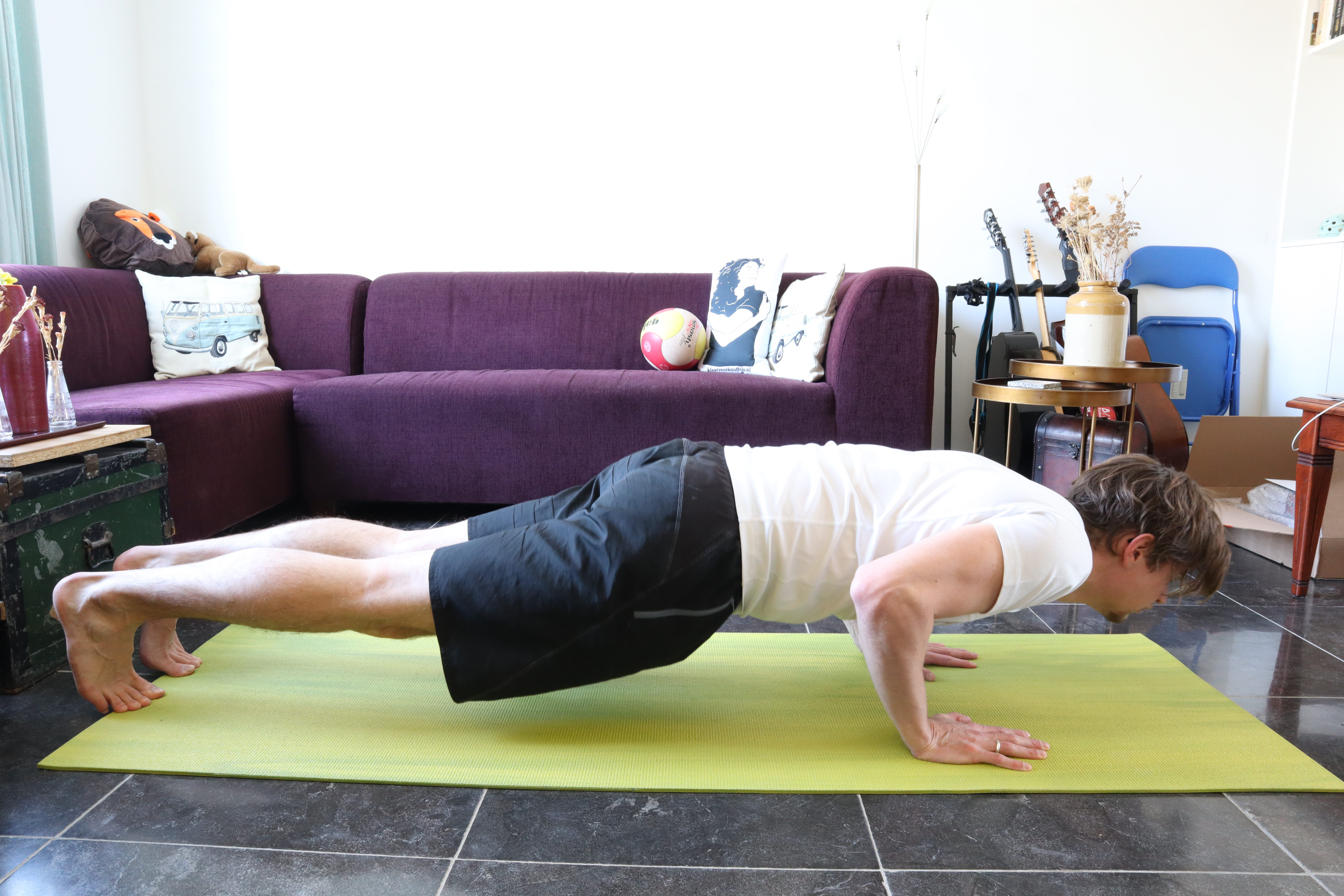 Beweeg daarom dagelijks minimaal 30 minuten, besteed aandacht aan je eetpatroon en pak tussen de 7 en 9 uur slaap. Dit laatste is één van de meest onderschatte factoren als het gaat om gezondheid en prestatieverbetering. Doe twee keer per week fysieke oefeningen zoals lunges, push ups (mag op de bankrand), tafel rows en ga kniebuigingen doen met je dochter in je nek (of je partner of huisgenoot).