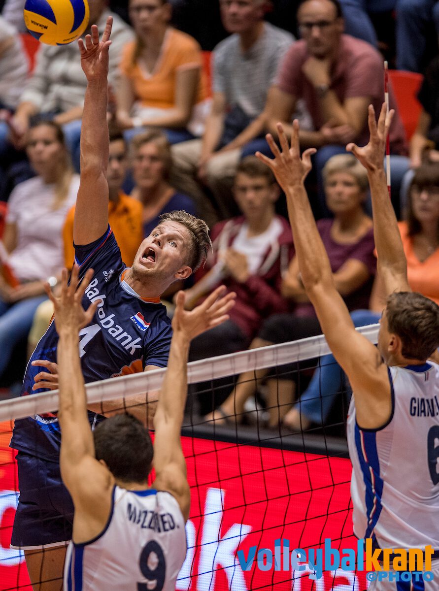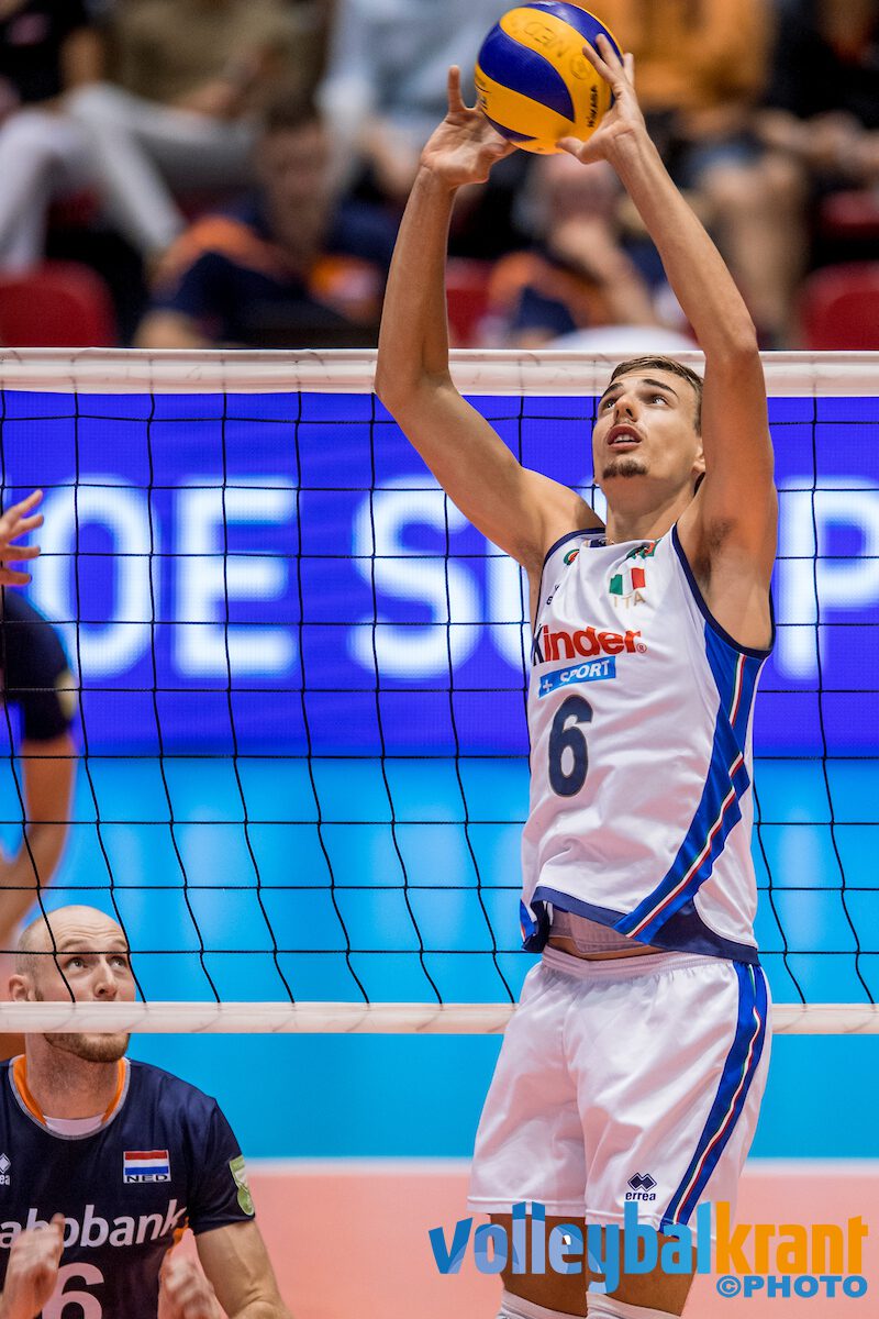 In een volle hal in Doetinchem kon Oranje in de openingsset weliswaar lang bijblijven, maar de ploeg van Vermeulen moest in de eindfase lossen. De Nederlandse passlinie werd zodanig onder druk gezet, dat Van Haarlem zijn aanvallers lastig kon bedienen. Via 19-22 snelde Italië weg naar 21-25 en een 0-1 voorsprong in sets.
