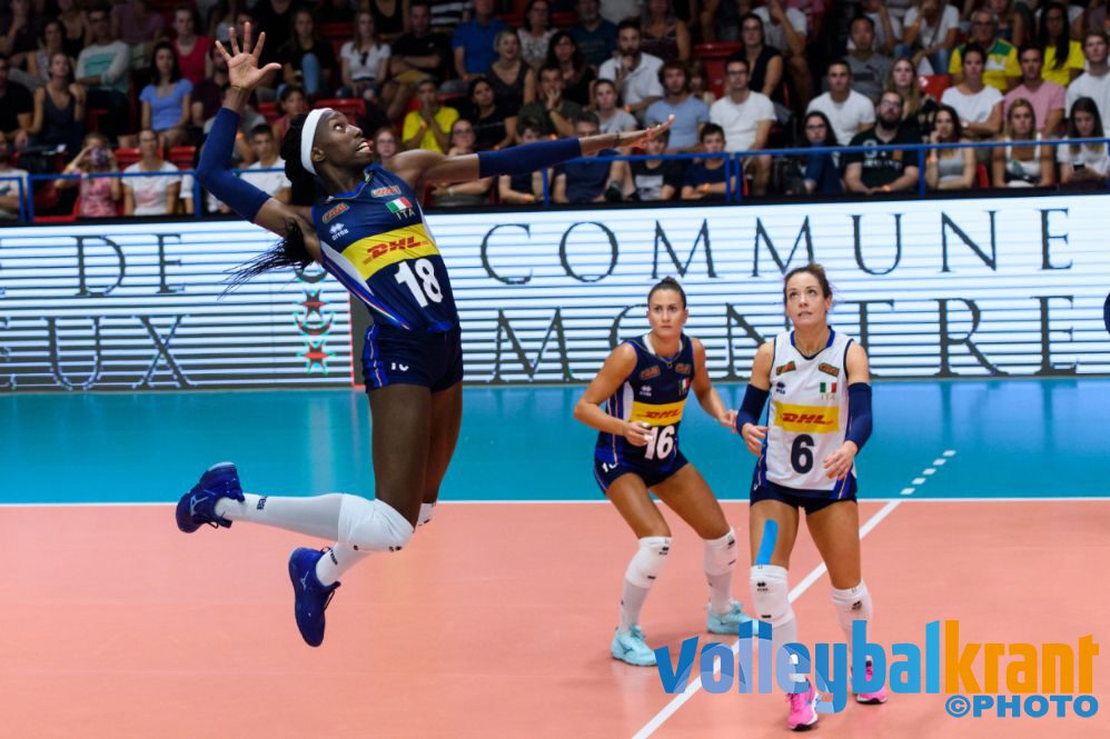 Hoewel de uitslag (3-0) het niet deed vermoeden kende ook de finale tussen Italië en Rusland een spannend wedstrijdverloop. De eerste set (25-21) werd overschaduwd door een blessure bij de Russische aanvalster Krotkova die na een aanval verkeerd terecht kwam, het uitschreeuwde van de pijn en van het veld gedragen moest worden. Set twee bleef lang onbeslist, met meerdere setpoints voor beide teams. Egonu bewees weer eens haar waarde met een schitterend killblock op 29-28. Rusland leek terug in de wedstrijd te komen na een 10-15 en 15-18 voorsprong in set drie, maar bij de 'big points' was de stand weer in evenwicht (20-20). In het vervolg was Italië doortastender en was het opnieuw Egonu met de beslissing in de set en in de wedstrijd (26-24).