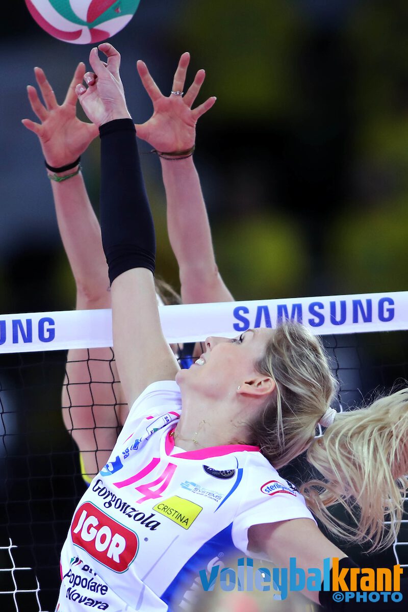 Robin de Kruijf werd zondagavond verkozen tot Most Valuable Player, mede dankzij 15 aanvalspunten en 5 blokpunten. De middenaanvalster wist met Conegliano bij en van Unet Yamamay Busto Arsizio te winnen in een twee uur durende vijfsetter: 25-22, 20-25, 20-25, 25-22 en 9-15. Liu Jo Nordmeccanica Modena wist belangrijke punten te pakken van Il Bisonte Firenze: 25-18, 25-22 en 25-22. Daarmee staat Modena nu op een zesde plaats in het klassement.