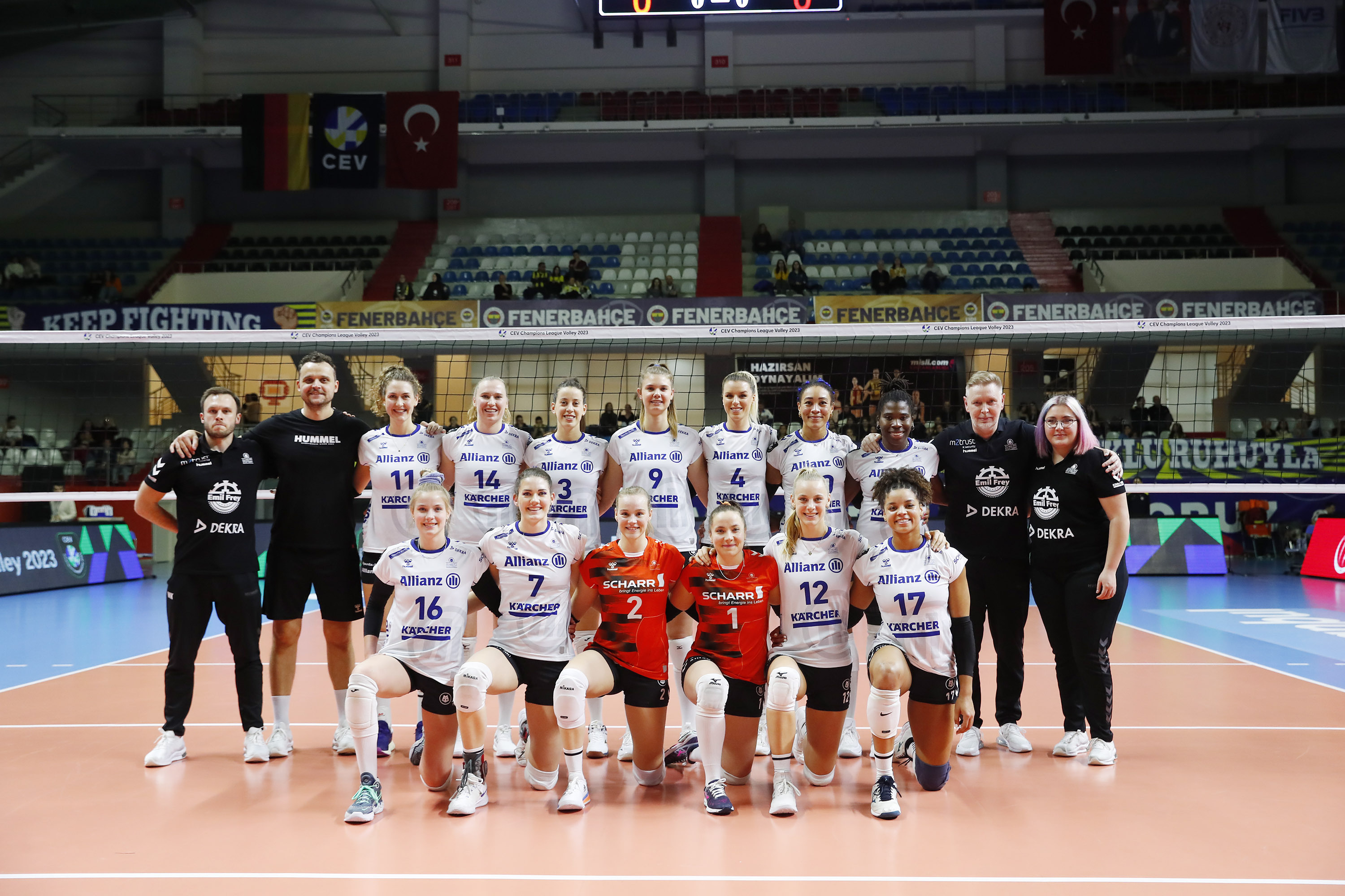 Allianz MTV Stuttgart had ook de eerste drie wedstrijden gewonnen in de lastige poule met onder meer de Turkse topclub Fenerbahce Opet Istanbul en de koploper uit de Poolse competitie LKS Commercecon Lodz. In de thuiswedstrijd met Fenerbahce won het team van Britt Bongaerts en Eline Timmerman verrassend en had dus ook in de uitwedstrijd kansen op een overwinning. Dit keer had het echter niet genoeg een antwoord op de aanvallende scores van toptalenten Arina Fedorovtseva (19 jaar) en Melissa Vargas (23 jaar). In vier sets ging de winst naar Fenerbahce (25-20, 22-25, 25-18, 25-16), waardoor er nog genoeg spanning is in de poule.