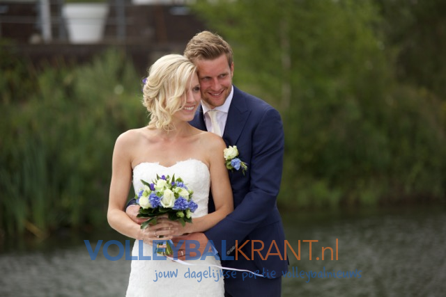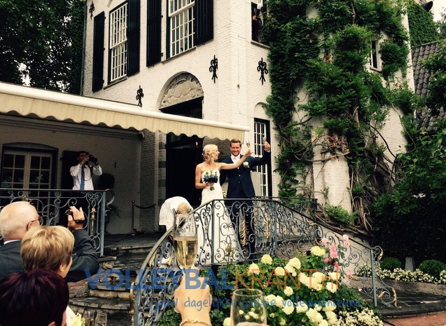In gezelschap van enkele volleyballers - zoals Maarten van Garderen, Gijs Jorna, Jeroen Rauwerdink en Bas van Bemmelen - vierde het bruidspaar deze mooie gebeurtenis.