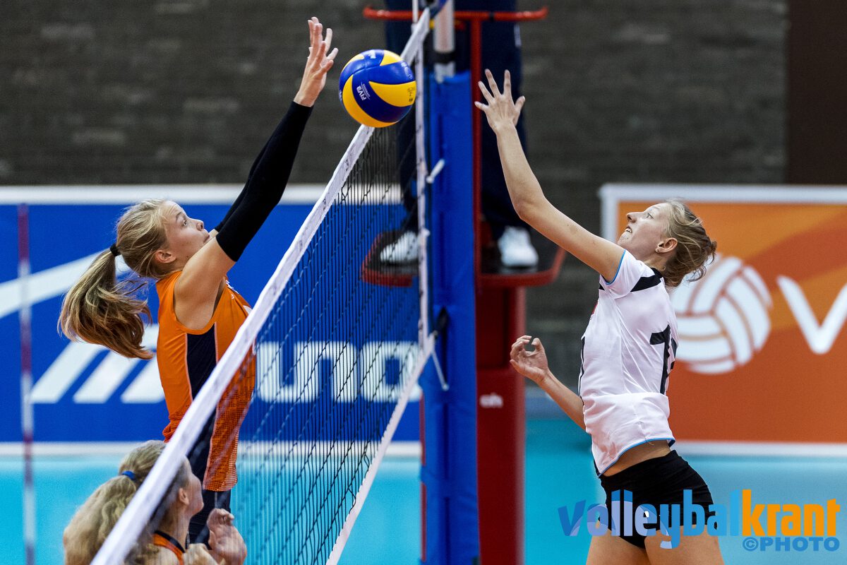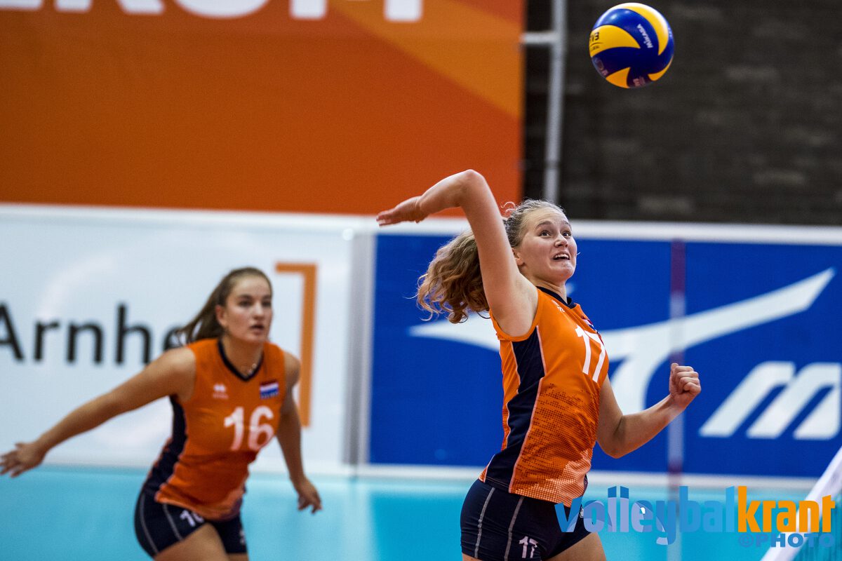 De eerste wedstrijd ging tegen Frankrijk en telde niet mee voor de competitie. Jeugd Oranje won die wedstrijd met 3-0 (25-23, 25-23, 25-20) na een wedstrijd met lange rally’s, want beide teams streden voor elk punt. De Nederlandse aanval was net iets sterker. De tweede wedstrijd ging tegen België en die telde wel mee. Daardoor stond er veel spanning op de wedstrijd, vooral omdat de twee grote supportersgroepen voor sfeer zorgden. België legde veel servicedruk op de passlijn van Jong Oranje en stond verdedigend goed georganiseerd. Jong Oranje kon door de zwakke passing en persoonlijke fouten nooit in zijn ritme komen en bezweek onder die druk, met uitzondering van Iris Vos, die sterk speelde. België won daardoor met 0-3 (21-25, 12-25, 20-25).