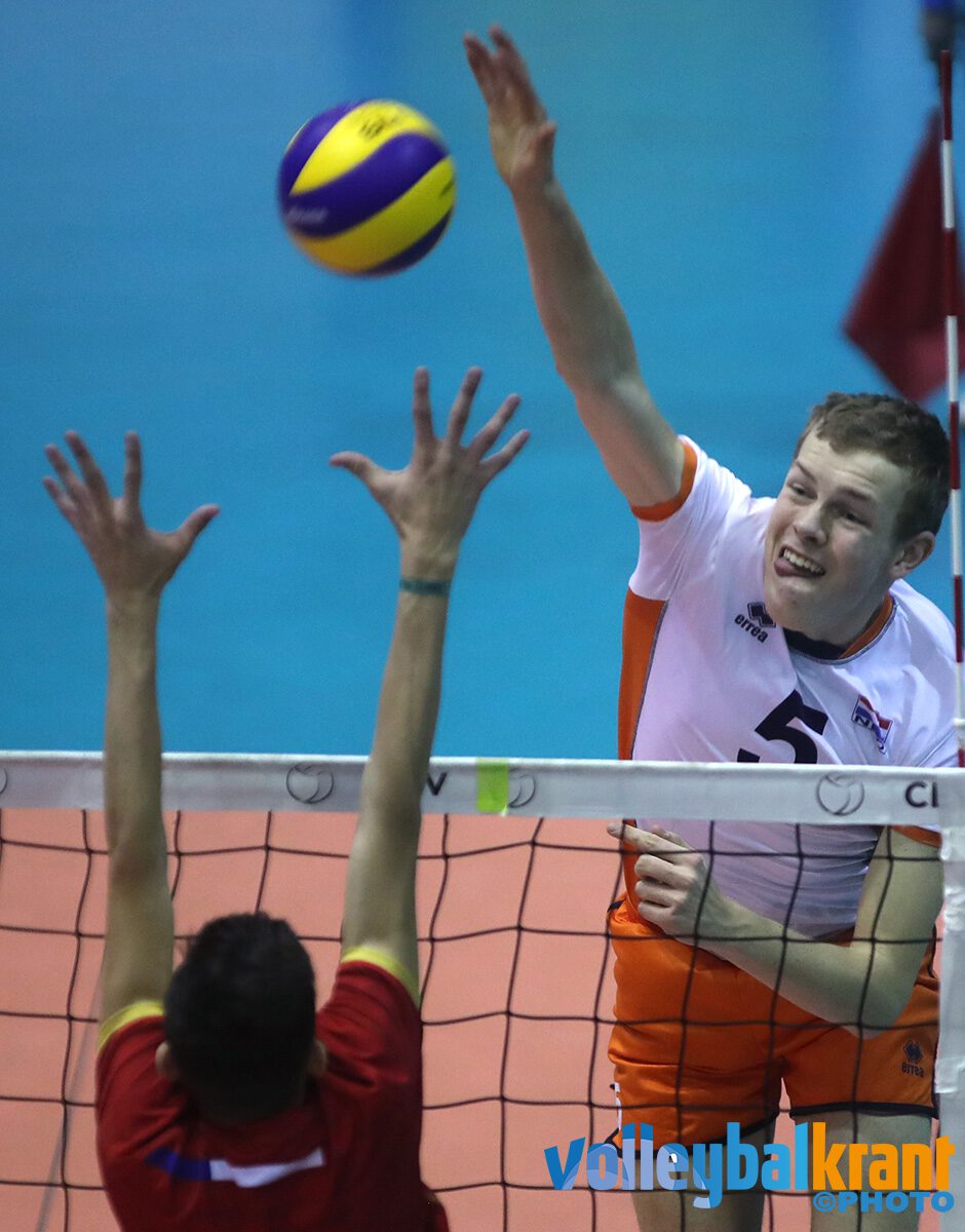Nederland had zich er veel meer van voorgesteld. Op het 8 landentoernooi was met 3 – 2 gewonnen van Frankrijk en dus ging het team met veel vertrouwen de wedstrijd in. Voor Nederland mochten starten: Martijn Brilhuis, Jesper van Muijden, Kian Macknack, Rik Damen, Luuk Hofhuis, Tieme de Jong en als libero Nick Martherus. Aanvankelijk wist Nederland prima bij te blijven en bij de eerste technische time-out was het 8 – 7 voor Frankrijk en verliep alles prima. Hierna zette Frankrijk Nederland onder druk en liep het uit naar 16 – 12 bij de tweede technische time-out. De servicedruk werd groter en in de persoon van Gregory Grimpin liet Frankrijk merken dat zij de betere waren en wonnen ze de eerste set met 25 – 21.