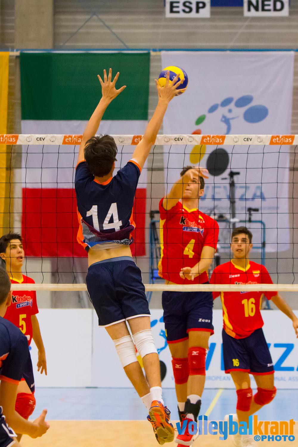 Thuisland België gaf daarin de jongens van Oranje geen schijn van kans. Het belofteteam van de zuiderburen overwon met 3-0 (25-16, 25-17, 25-20). In de kleine finale van zaterdag was Spanje ook duidelijk de betere: 3-0 (25-21, 25-15, 25-15).